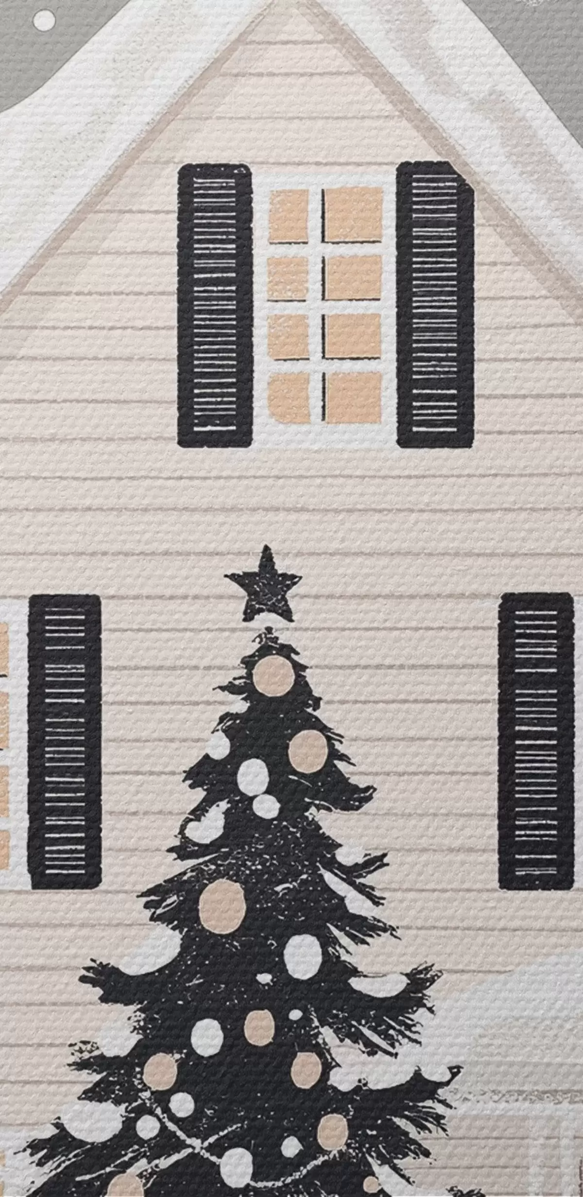 Gemälde Winterstadt, geschmückter Tannenbaum, Weihnachten, Wald, schönes Haus Art. s41371