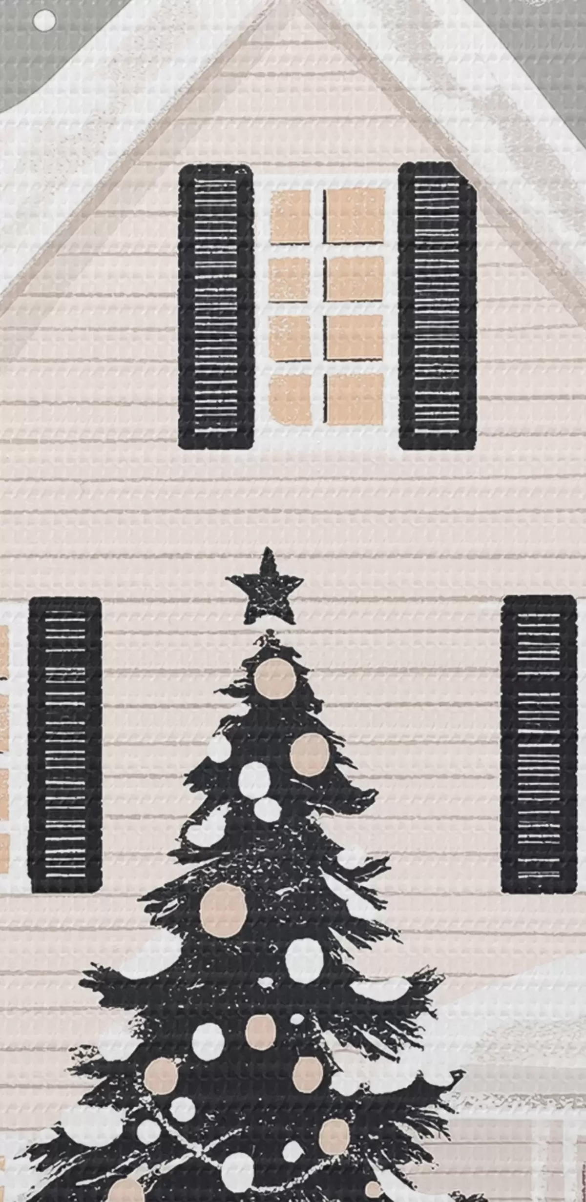Fototapete Winterstadt, geschmückter Tannenbaum, Weihnachten, Wald, schönes Haus s41371