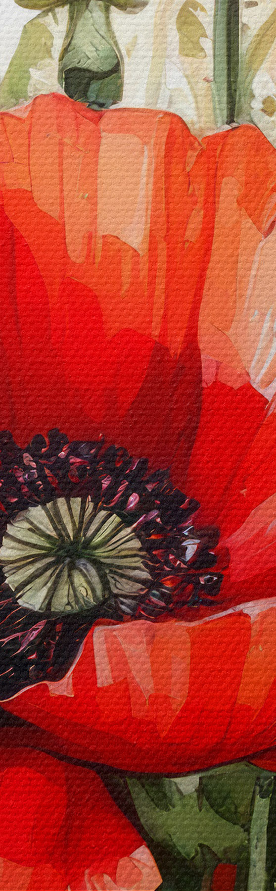 Drei Materialtypen stehen zur Verfügung: Economic Canvas - ein dichtes und haltbares Material für den Digitaldruck, identisch mit Malerleinwand, wasserfeste Oberfläche, realistische Wiedergabe von Details, mittelkörniges Material. Premium Canvas - die Textur ähnelt der einer Malerleinwand (verwobene kleine Fäden). Weiche, detaillierte Wiedergabe des Bildes auf einer matten Oberfläche. Eco-Premium - hochwertiges Gewebe aus 100% Baumwolle. Dank der natürlichen Baumwollfasern ist das Material langlebig und verschleißfest. Hervorragende Farbwiedergabe und Detailtreue.