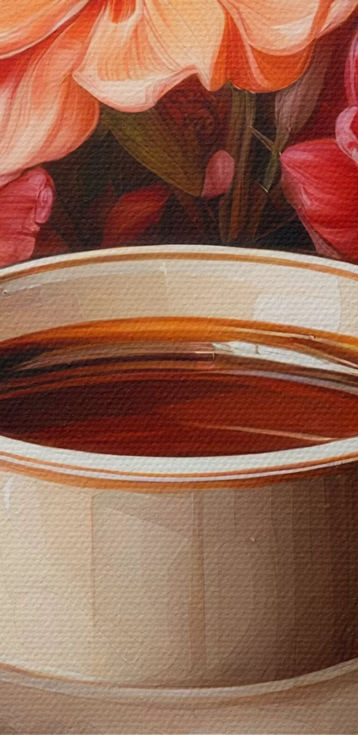 Gemälde eine Tasse Kaffee und einen Blumenstrauß Art. s41411