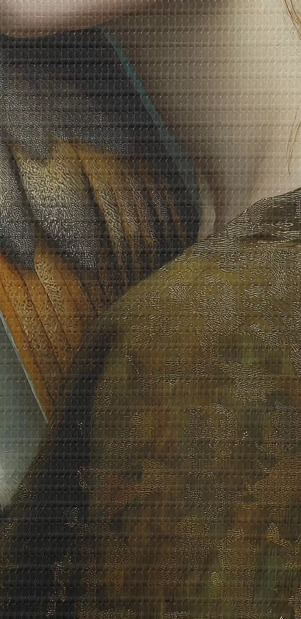 Um die Leinwand auf Keilrahmen zu spannen, ohne das Bild zu beschädigen, verwenden wir ein gespiegeltes Bild.