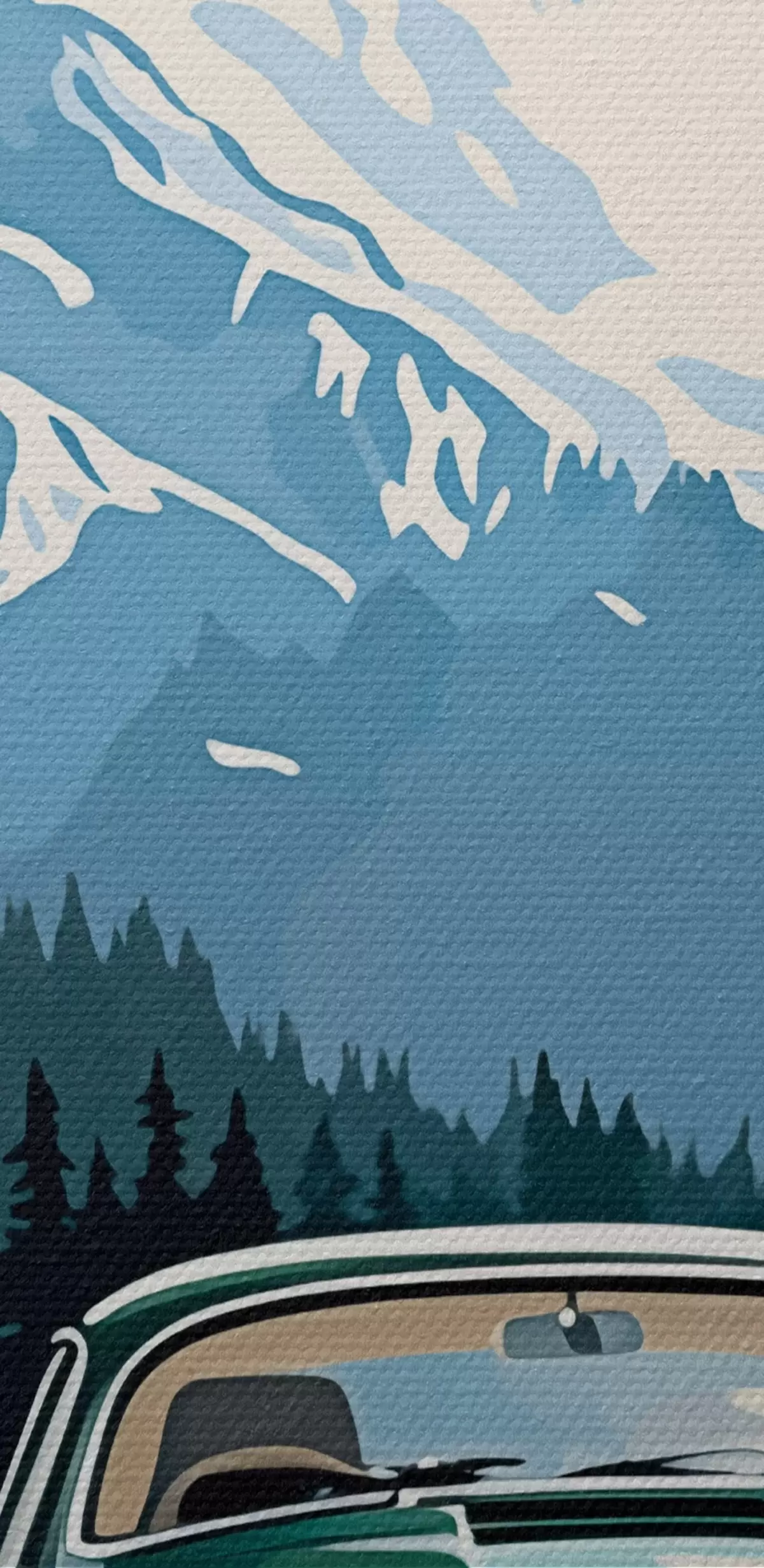 Gemälde Retro-Auto auf winterlicher Bergstraße Art. s41478