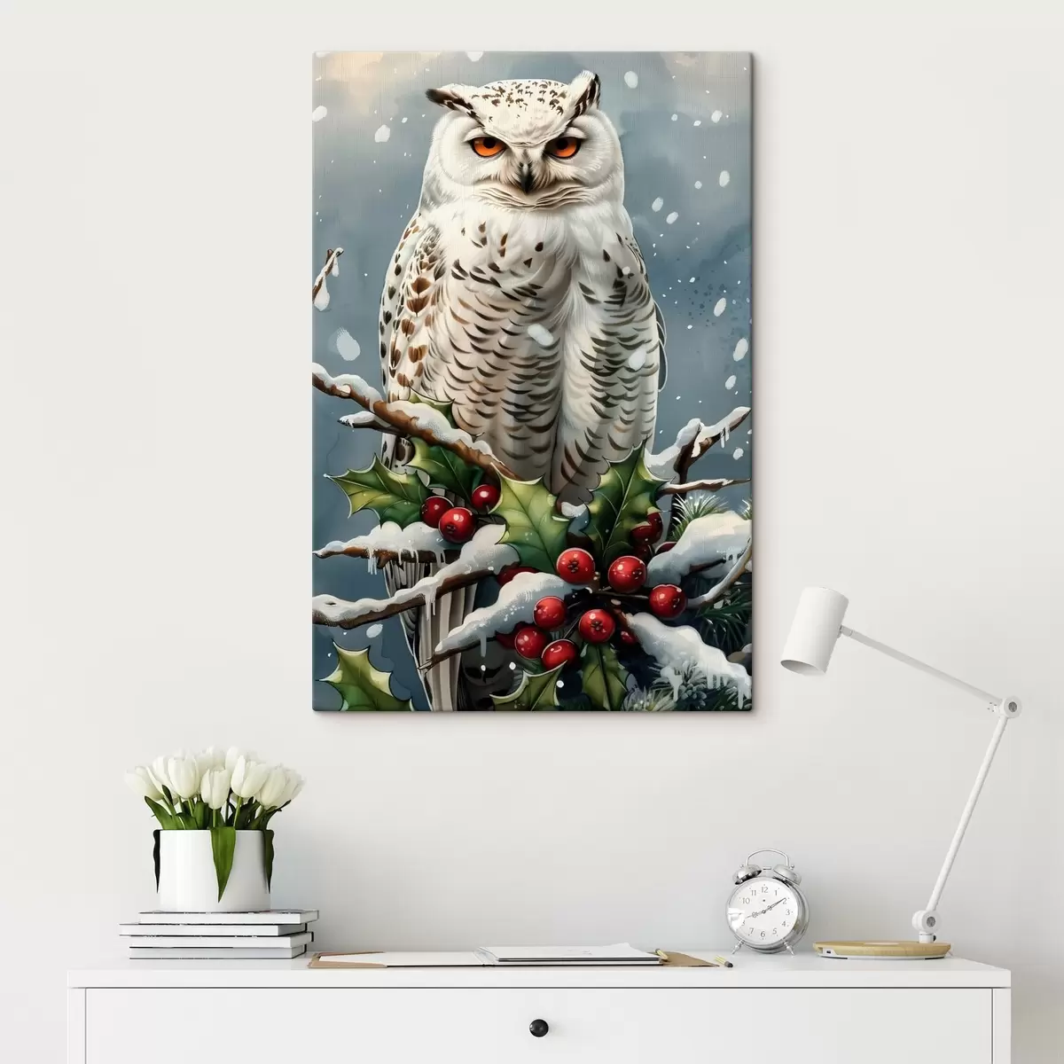 Gemälde Eule auf einem Winterzweig mit Beeren und Blättern Art. s41482