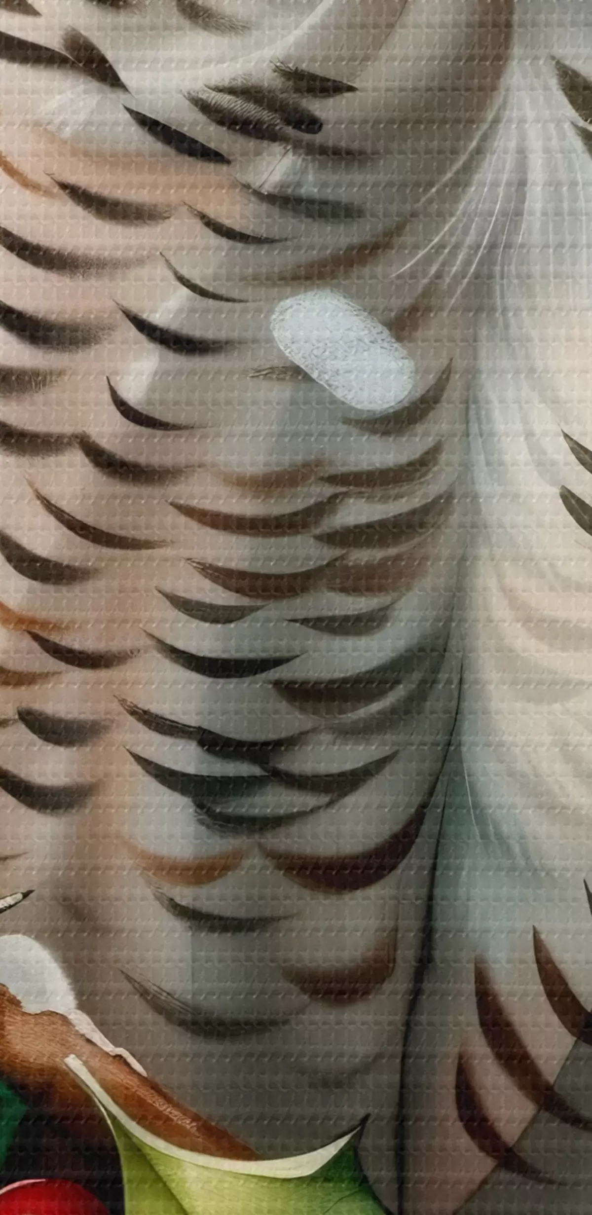 Um die Leinwand auf Keilrahmen zu spannen, ohne das Bild zu beschädigen, verwenden wir ein gespiegeltes Bild.