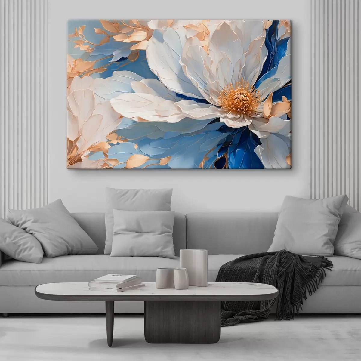 Gemälde Nahaufnahme einer Blume mit weißen und blauen Blütenblättern Art. s41512