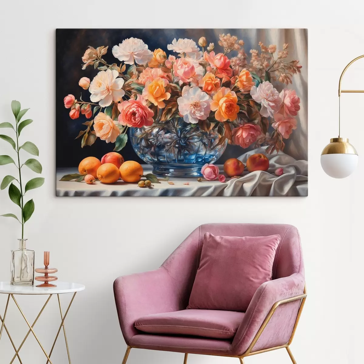 Gemälde Blumenstrauß in einer transparenten Vase auf einem Tisch Art. s41533