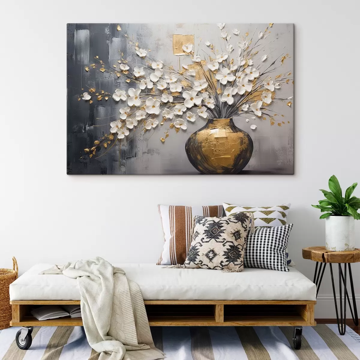Gemälde Volumetrische kleine helle Blumen in einer Vase, Nachahmung Ölgemälde Art. s41558