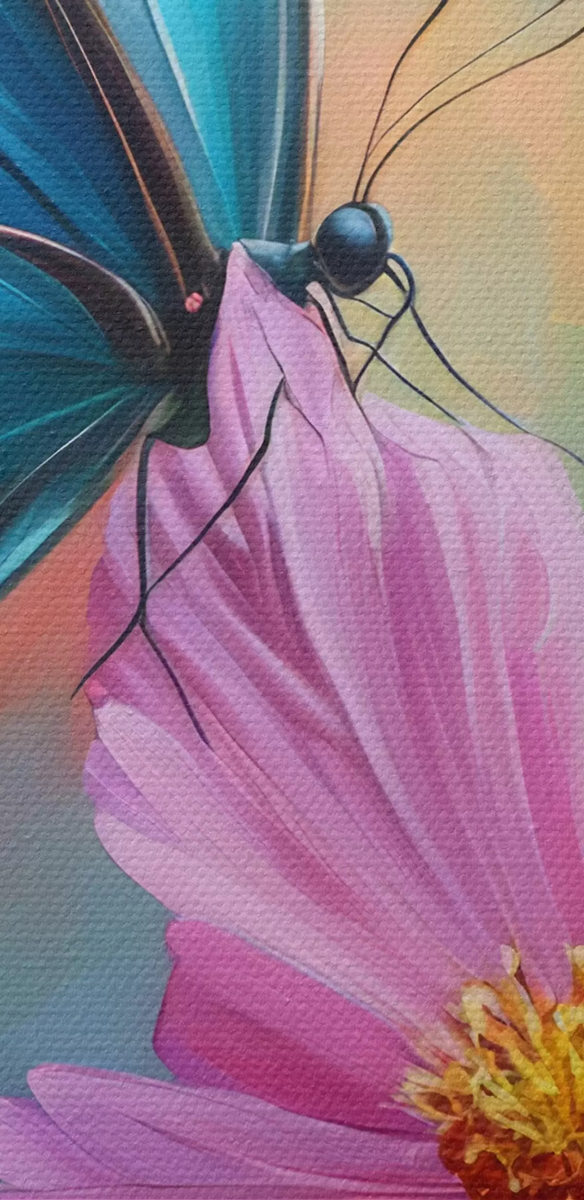 Gemälde schmetterling und große rosa Blume Art. s41620
