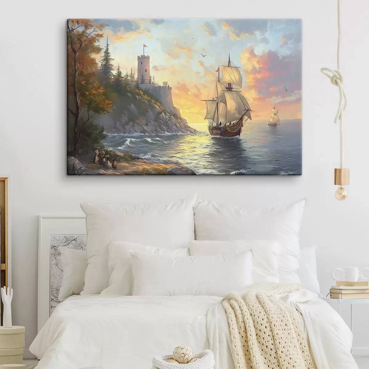 Gemälde schiff in der Nähe des Ufers in der Morgendämmerung Art. s41626