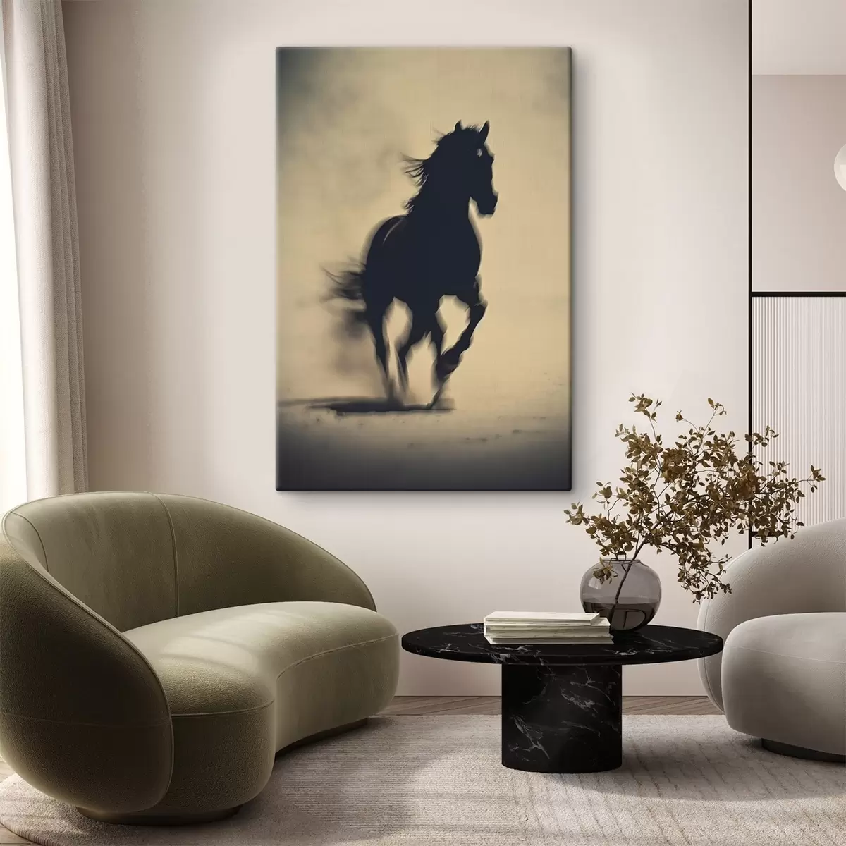 Gemälde Silhouette eines schwarzen Pferdes in verschwommenem Stil Art. s41708