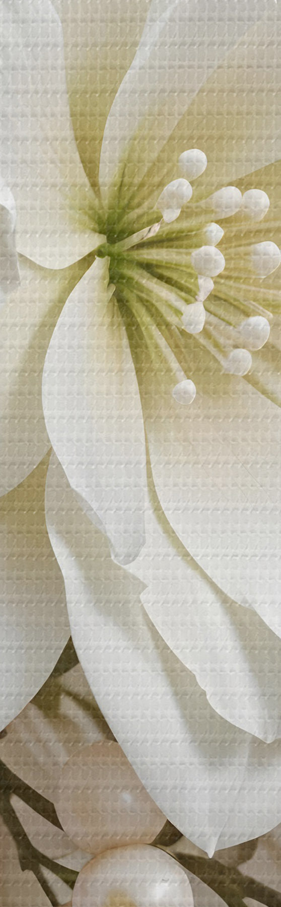 Fototapete Zarte weiße Blumen, darunter Lilien, Rosen und andere Blüten mit weichen, samtigen Blütenblättern  s41722