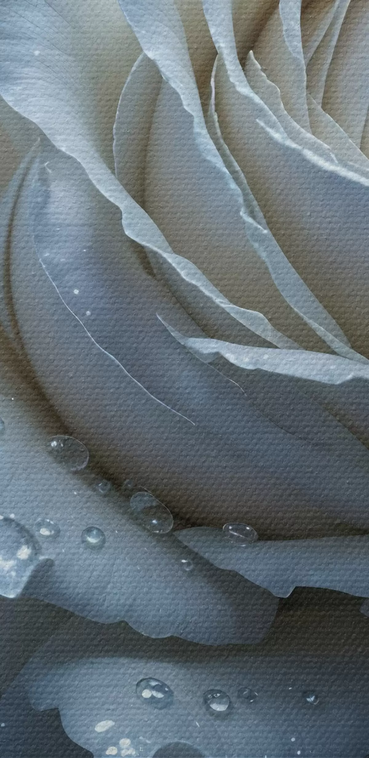 Gemälde Eine Nahaufnahme einer weißen Rose mit Wassertropfen auf den Blütenblättern vor einem dunklen Hintergrund Art. s41723