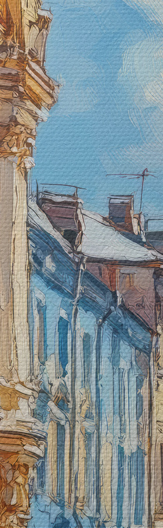 Drei Materialtypen stehen zur Verfügung: Economic Canvas - ein dichtes und haltbares Material für den Digitaldruck, identisch mit Malerleinwand, wasserfeste Oberfläche, realistische Wiedergabe von Details, mittelkörniges Material. Premium Canvas - die Textur ähnelt der einer Malerleinwand (verwobene kleine Fäden). Weiche, detaillierte Wiedergabe des Bildes auf einer matten Oberfläche. Eco-Premium - hochwertiges Gewebe aus 100% Baumwolle. Dank der natürlichen Baumwollfasern ist das Material langlebig und verschleißfest. Hervorragende Farbwiedergabe und Detailtreue.