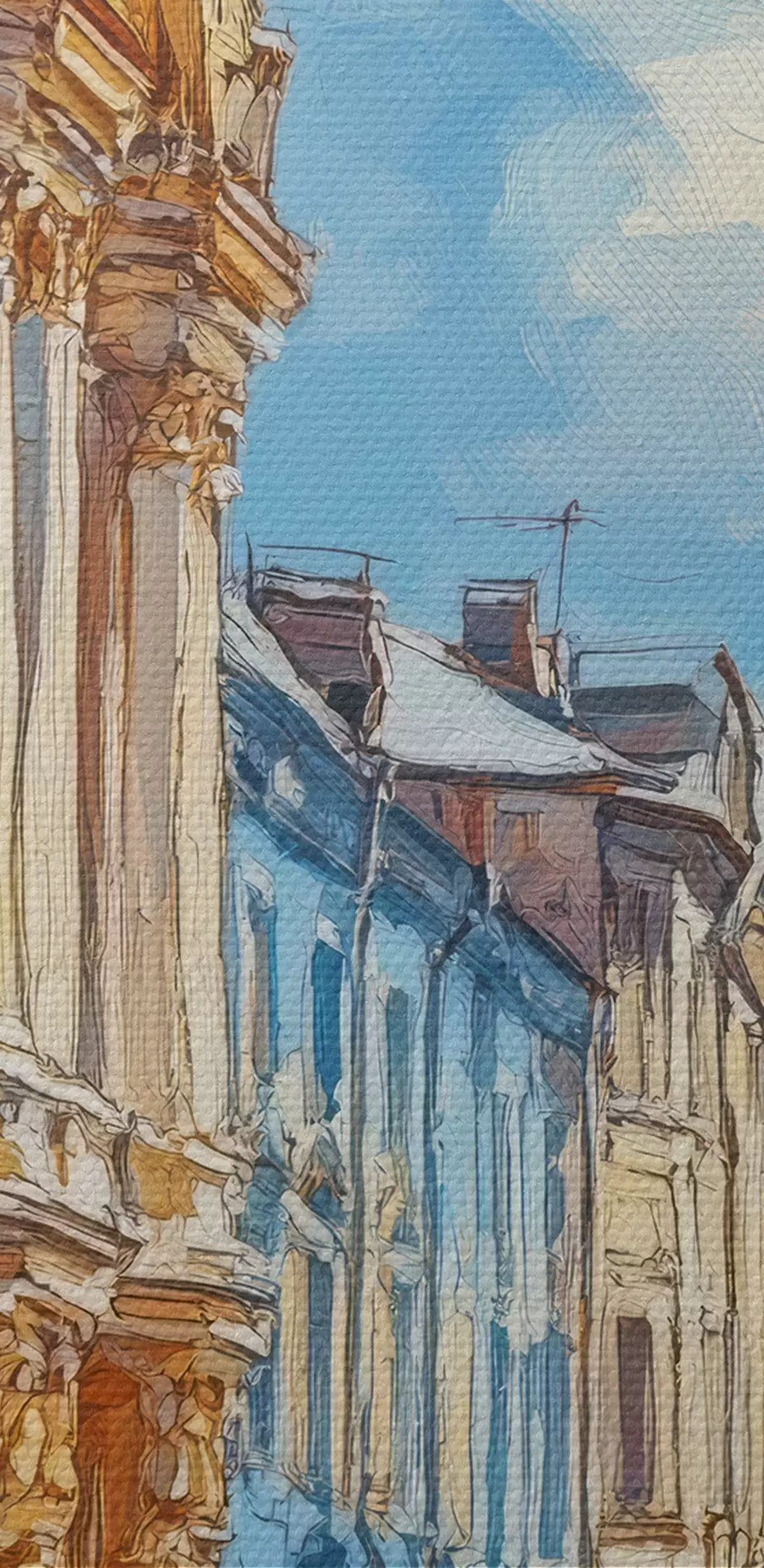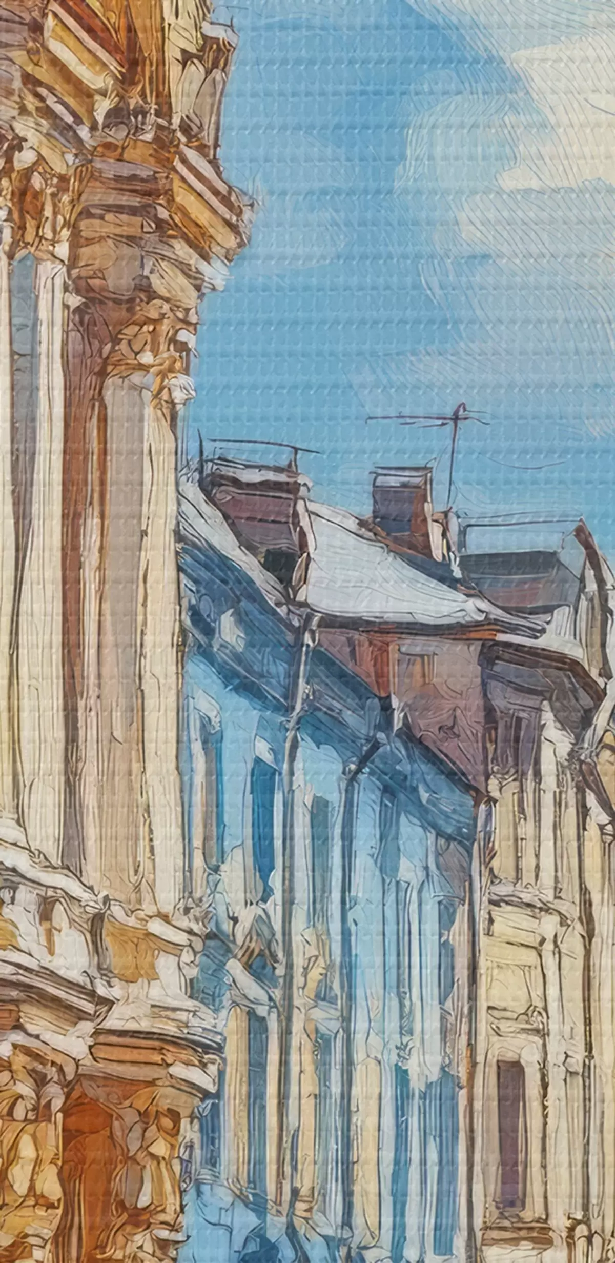 Fototapete Stadtstraße an einem sonnigen Tag, im Stil der Ölmalerei s41751