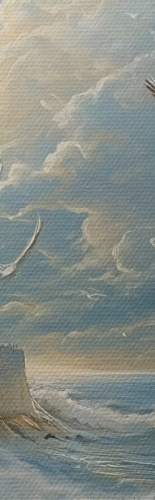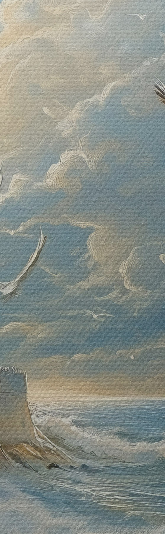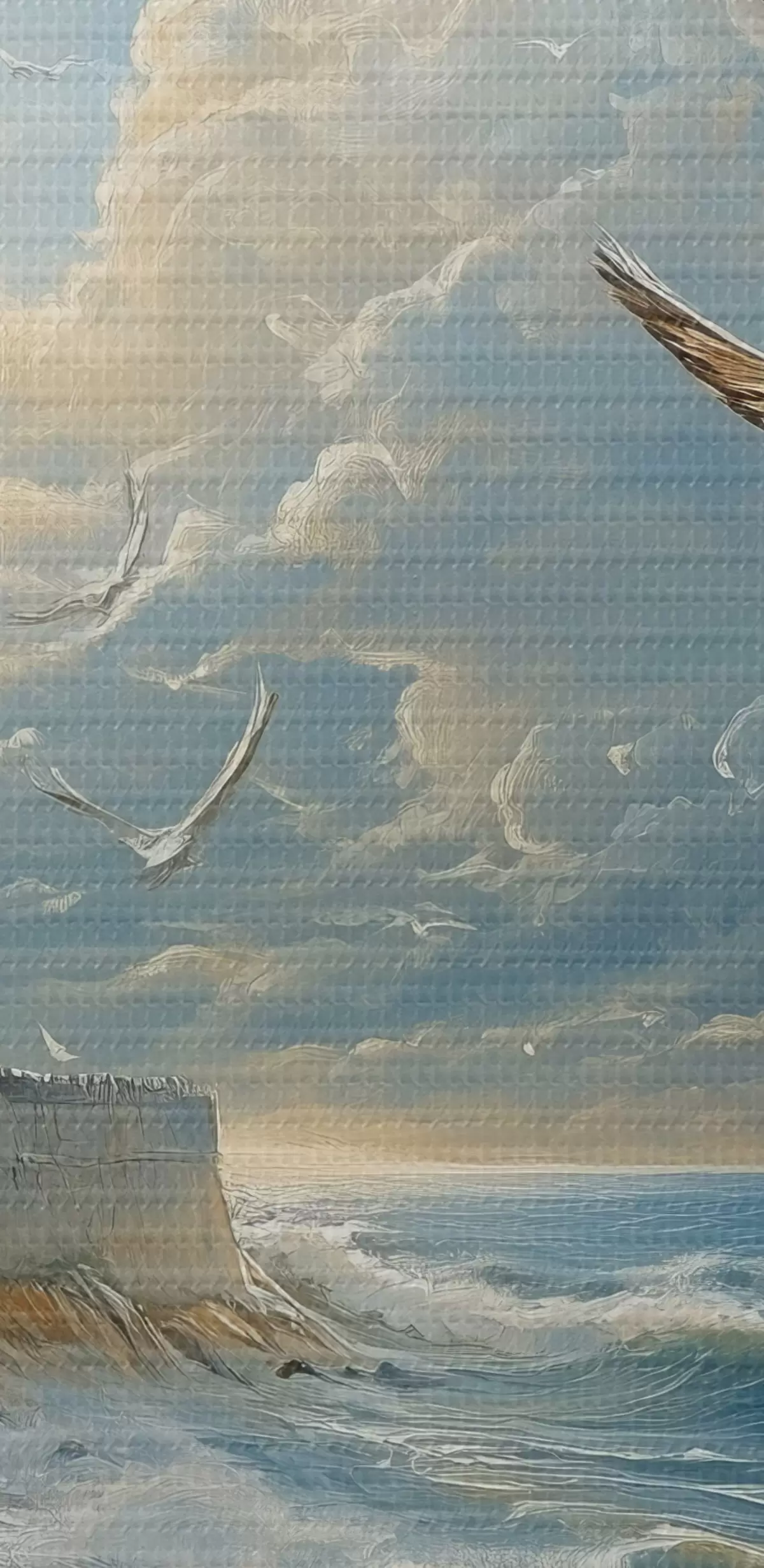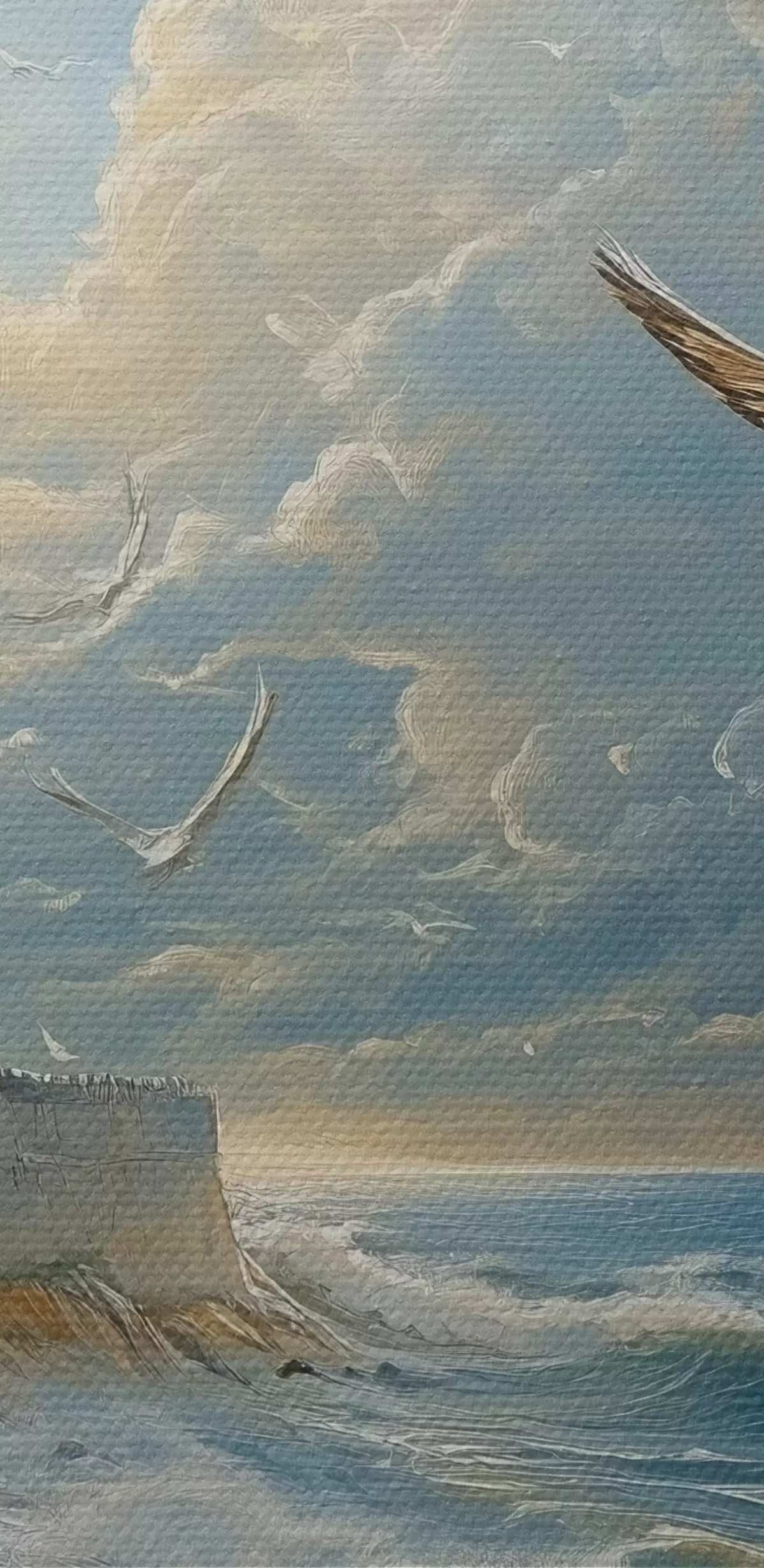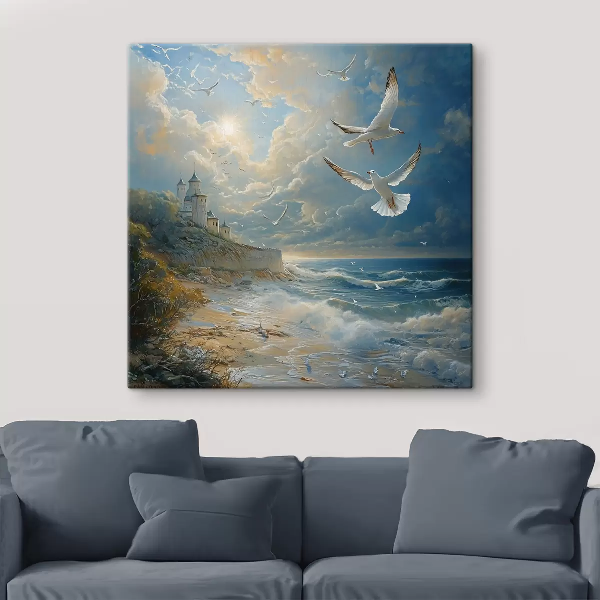 Fototapete Meeresküste und Vögel, im Stil der Ölmalerei s41756