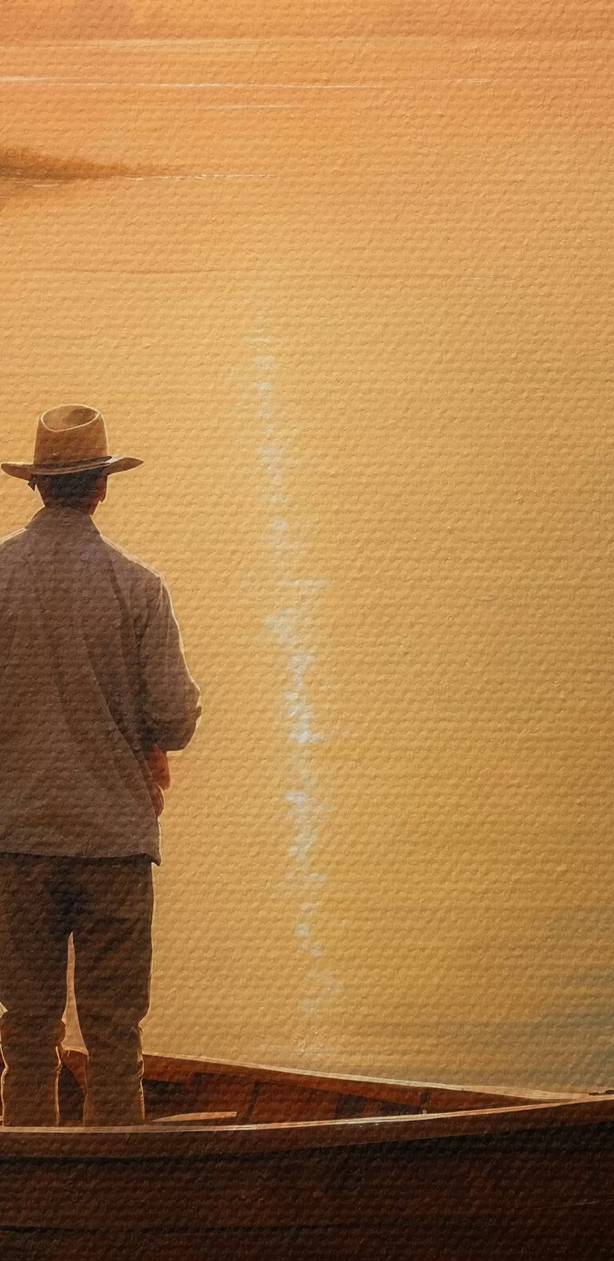 Gemälde Mann in einem Boot in der Mitte eines Sees Art. s41770