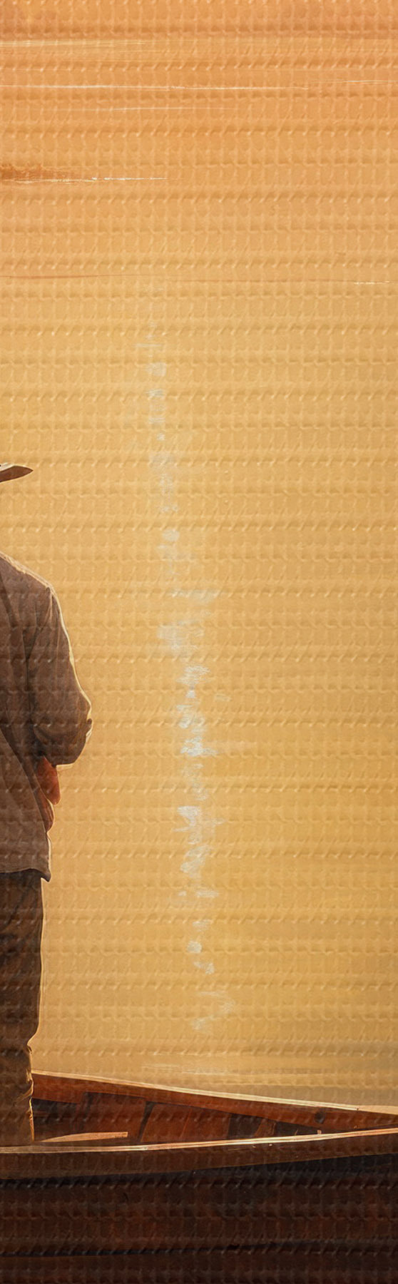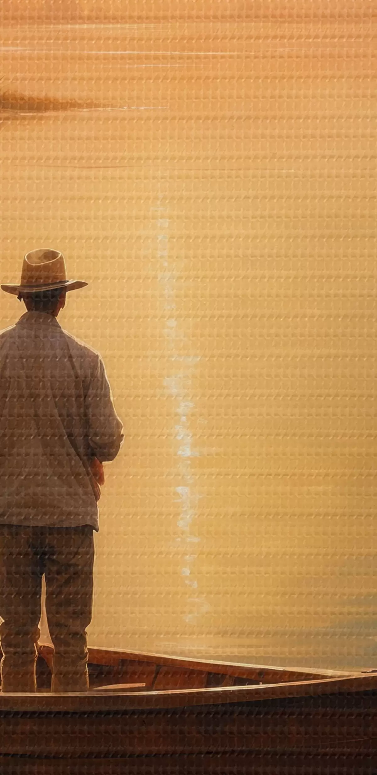 Fototapete Mann in einem Boot in der Mitte eines Sees s41770