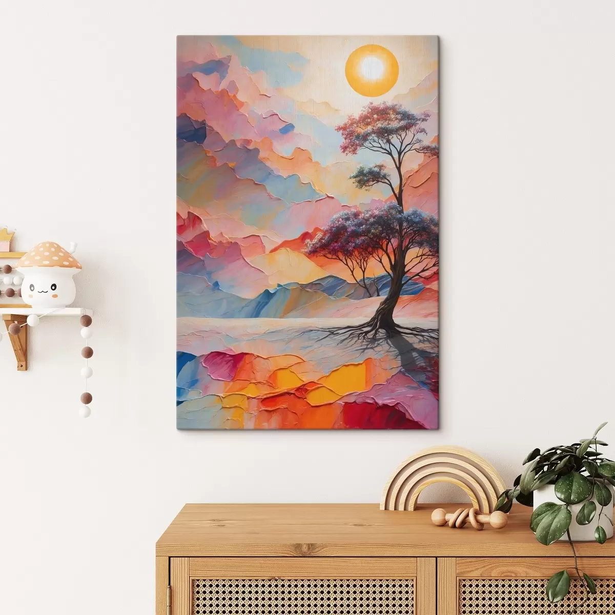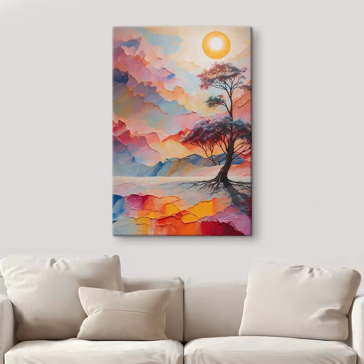 Gemälde Baum und Sonne auf abstraktem Hintergrund im Acryl-Stil Art. s41771
