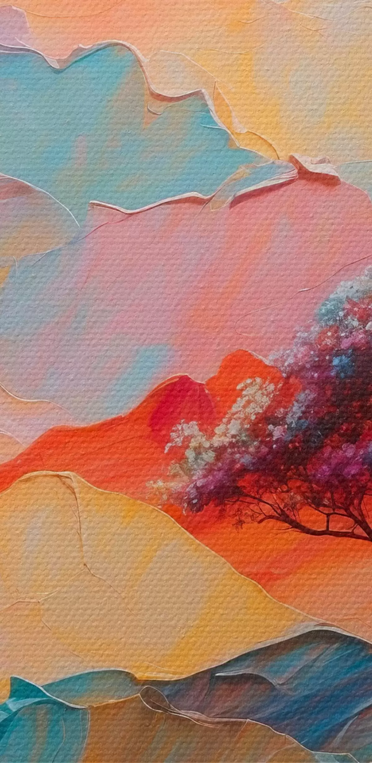 Fototapete Baum und Sonne auf abstraktem Hintergrund im Acryl-Stil s41771