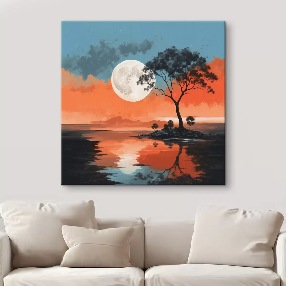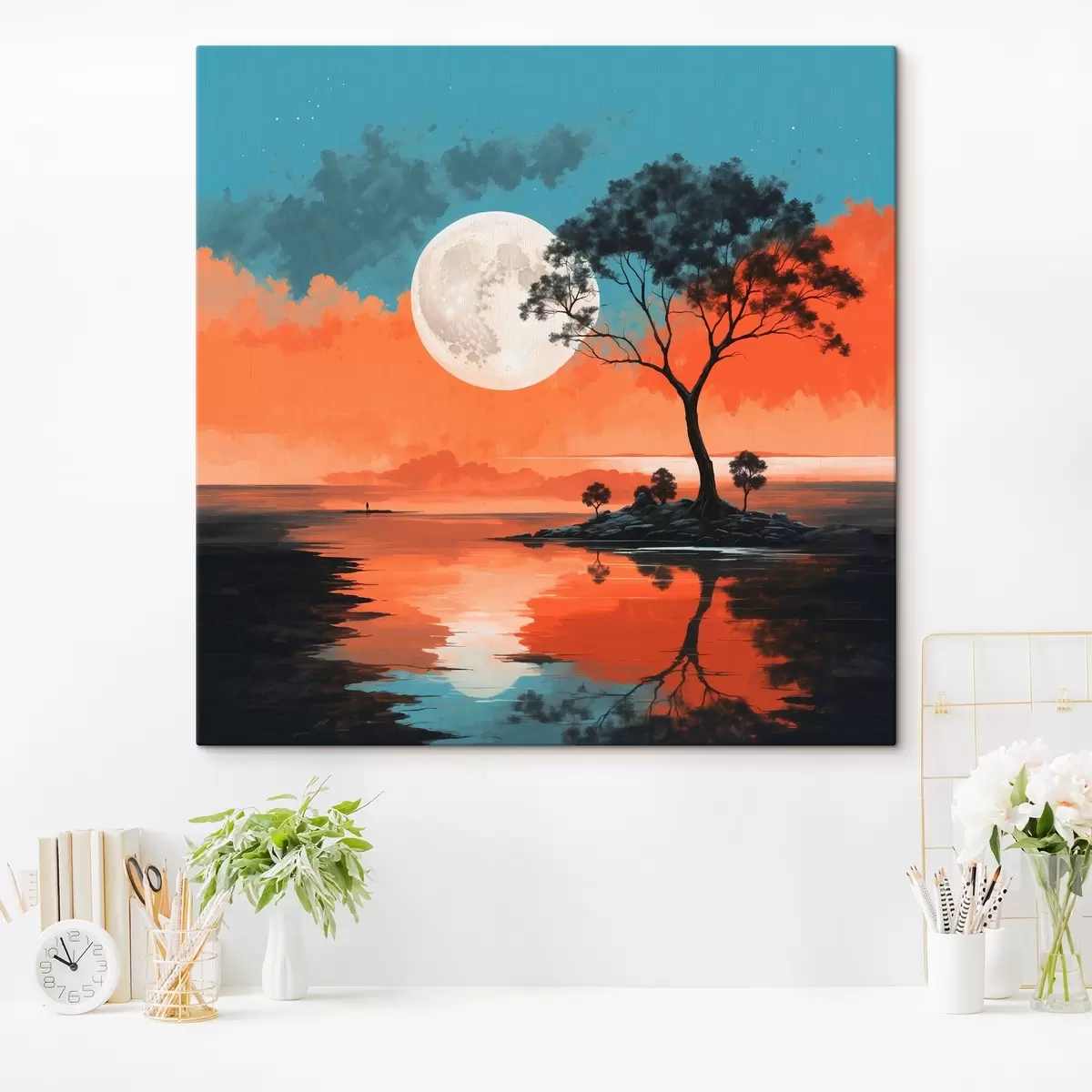 Gemälde Baum in der Mitte eines Sees auf dem Hintergrund des Mondes Art. s41775