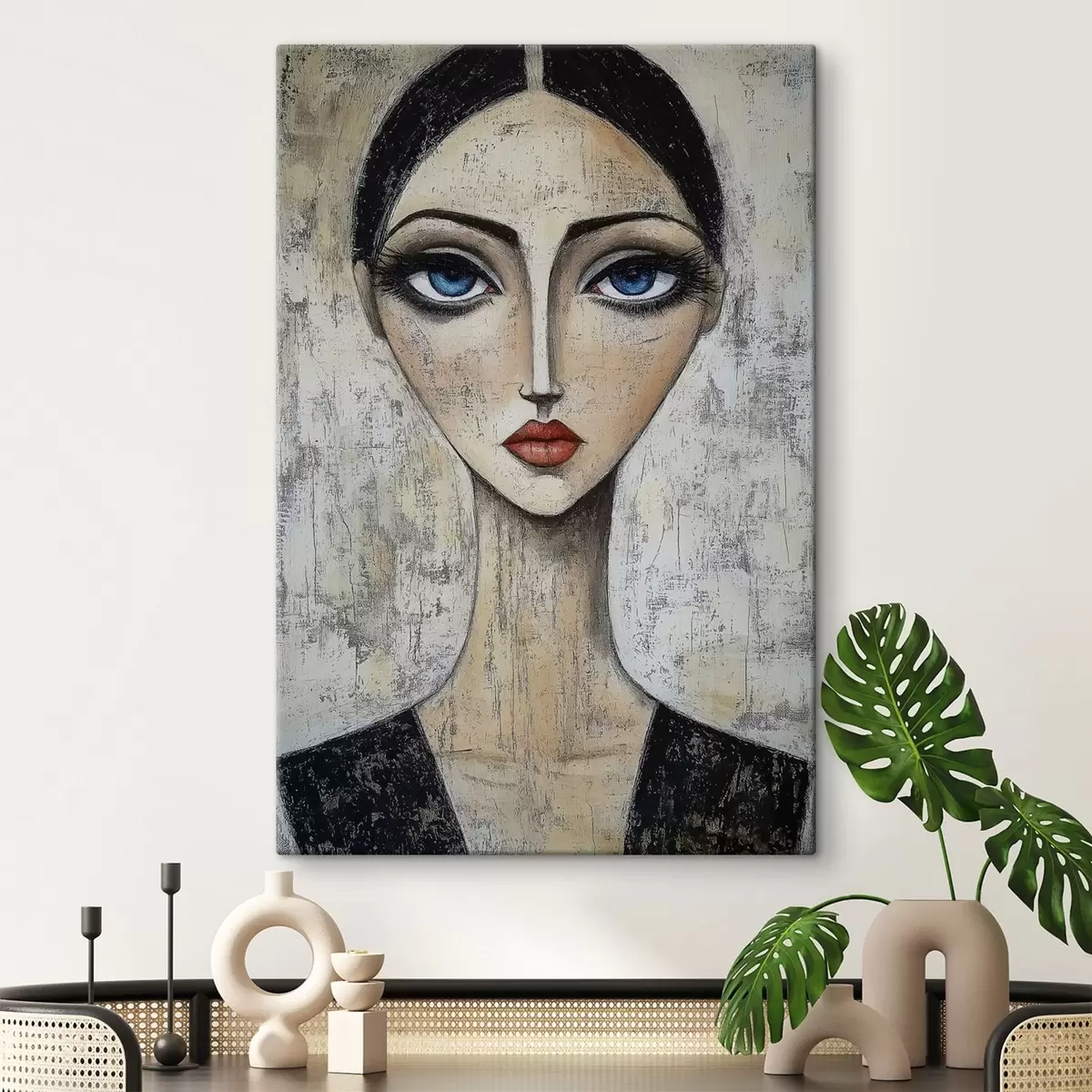 Gemälde Porträt einer Frau mit ausdrucksvollen Augen in einer stilisierten Technik Art. s41811