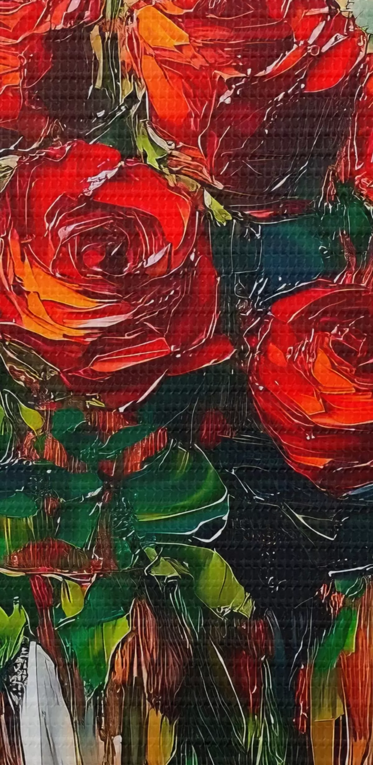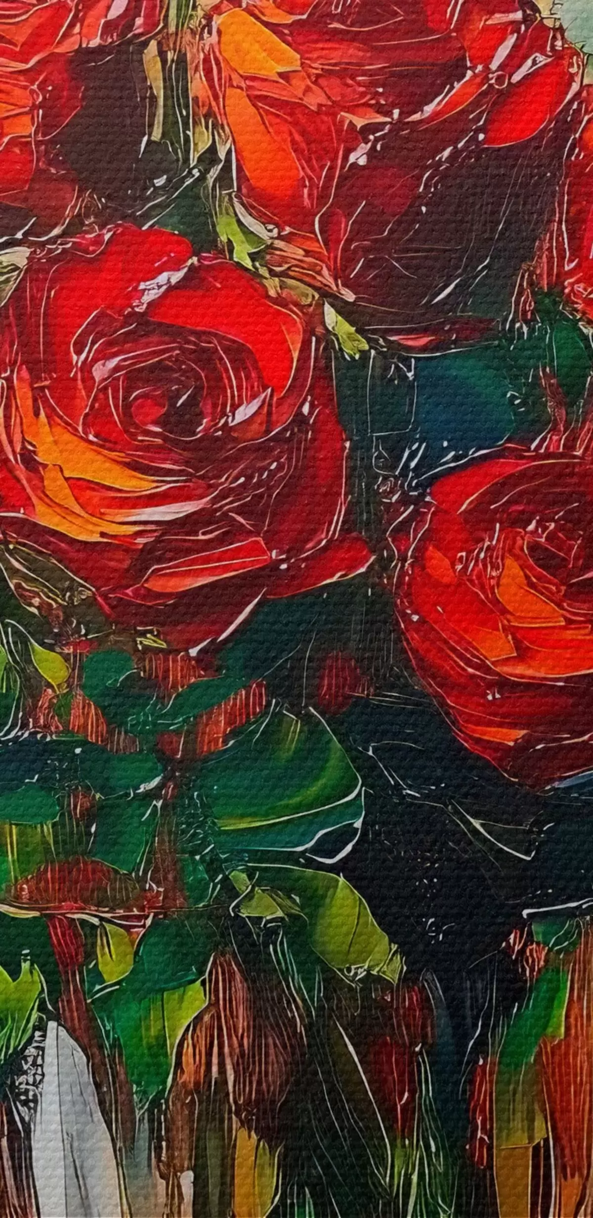 Gemälde Rote Rosen in einer transparenten Vase auf einem warmen Hintergrund Art. s41816