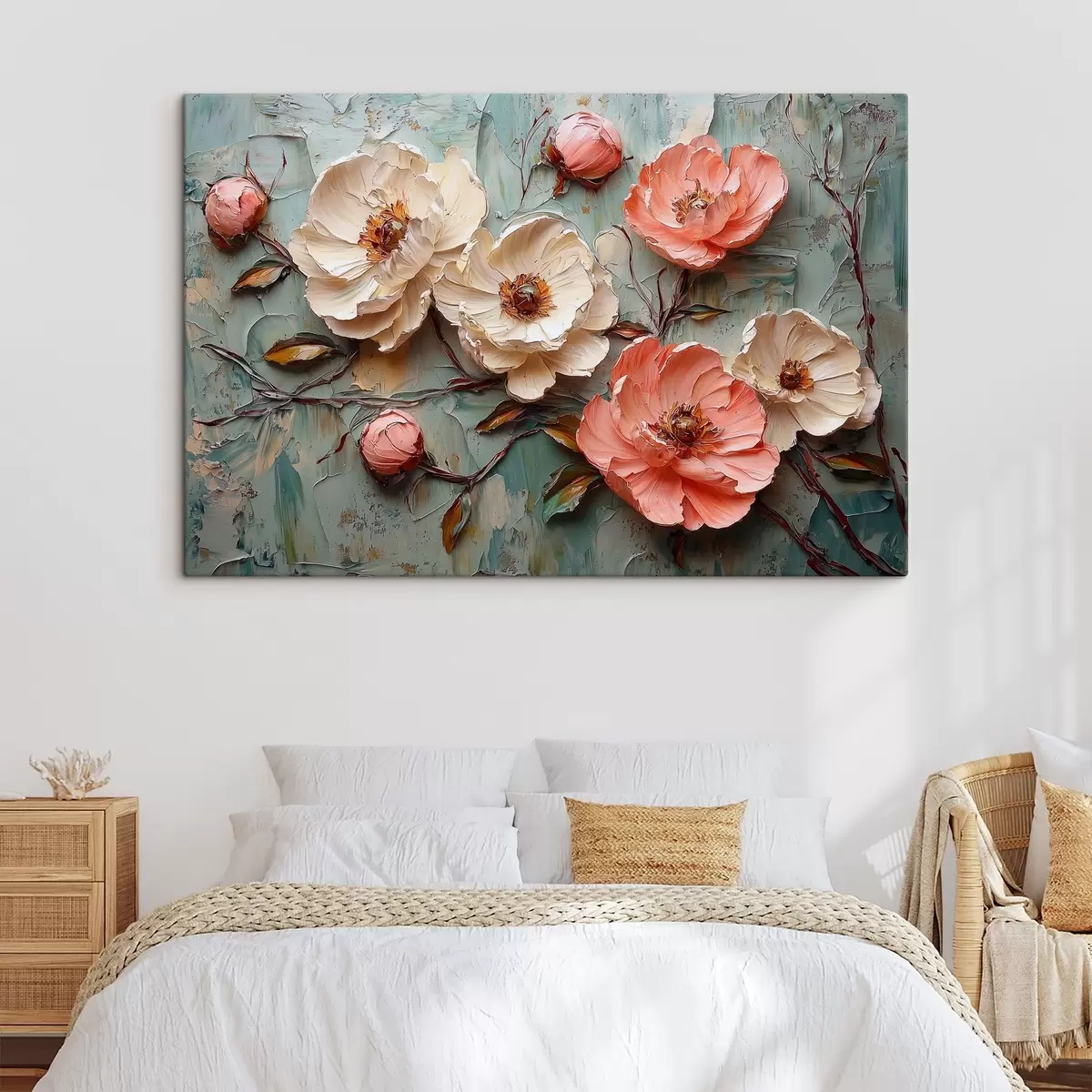 Drei Materialtypen stehen zur Verfügung: Economic Canvas - ein dichtes und haltbares Material für den Digitaldruck, identisch mit Malerleinwand, wasserfeste Oberfläche, realistische Wiedergabe von Details, mittelkörniges Material. Premium Canvas - die Textur ähnelt der einer Malerleinwand (verwobene kleine Fäden). Weiche, detaillierte Wiedergabe des Bildes auf einer matten Oberfläche. Eco-Premium - hochwertiges Gewebe aus 100% Baumwolle. Dank der natürlichen Baumwollfasern ist das Material langlebig und verschleißfest. Hervorragende Farbwiedergabe und Detailtreue.