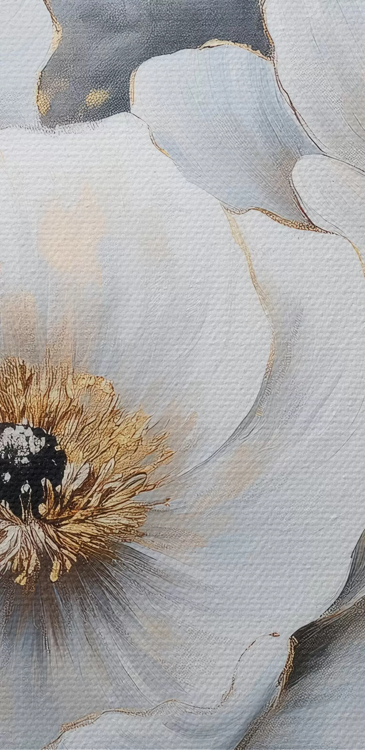 Gemälde Weiße zarte Blumen vor einem Hintergrund von Ölgemälde Striche Art. s41833