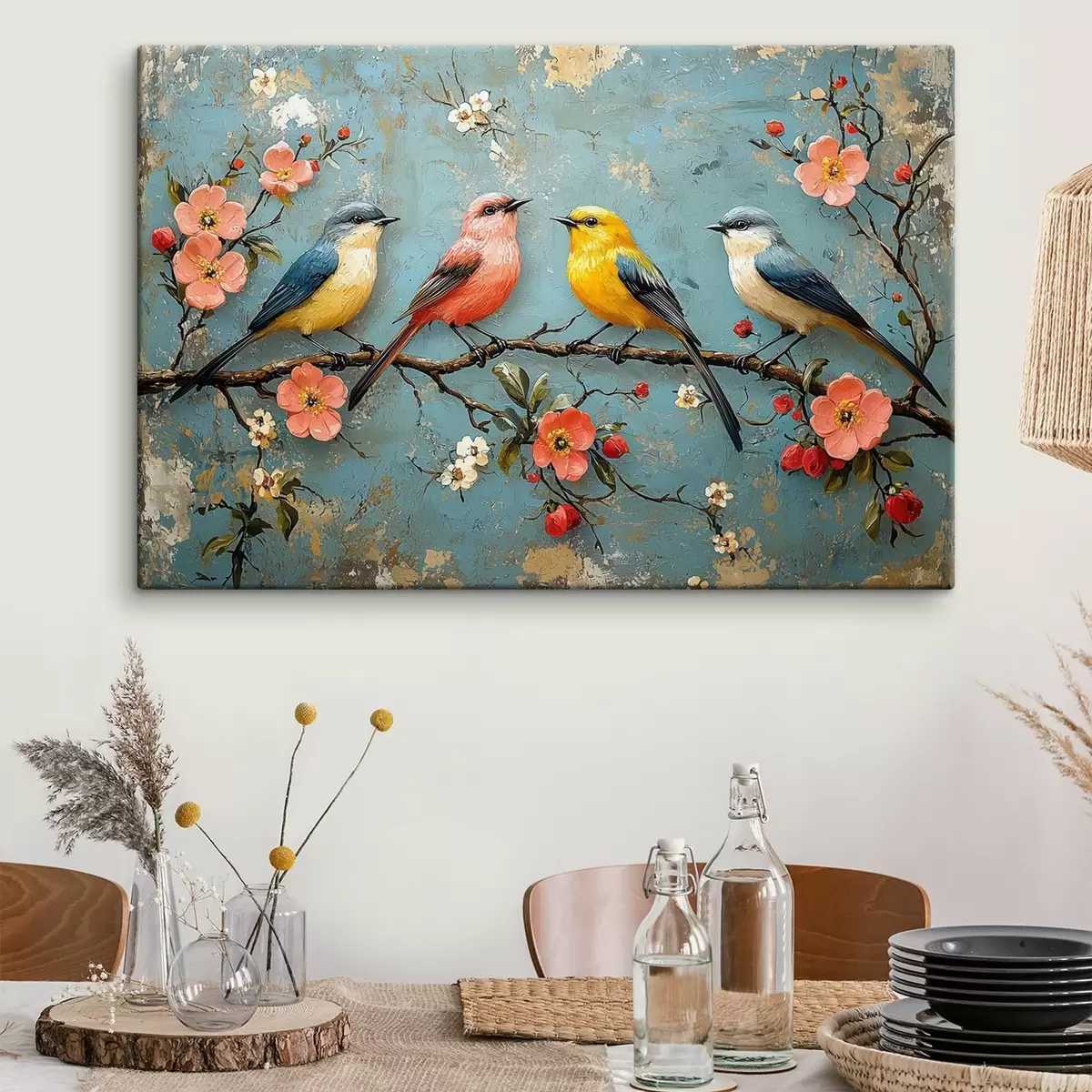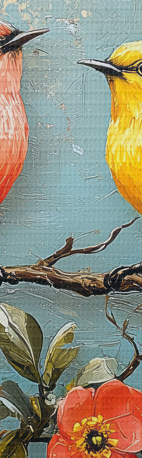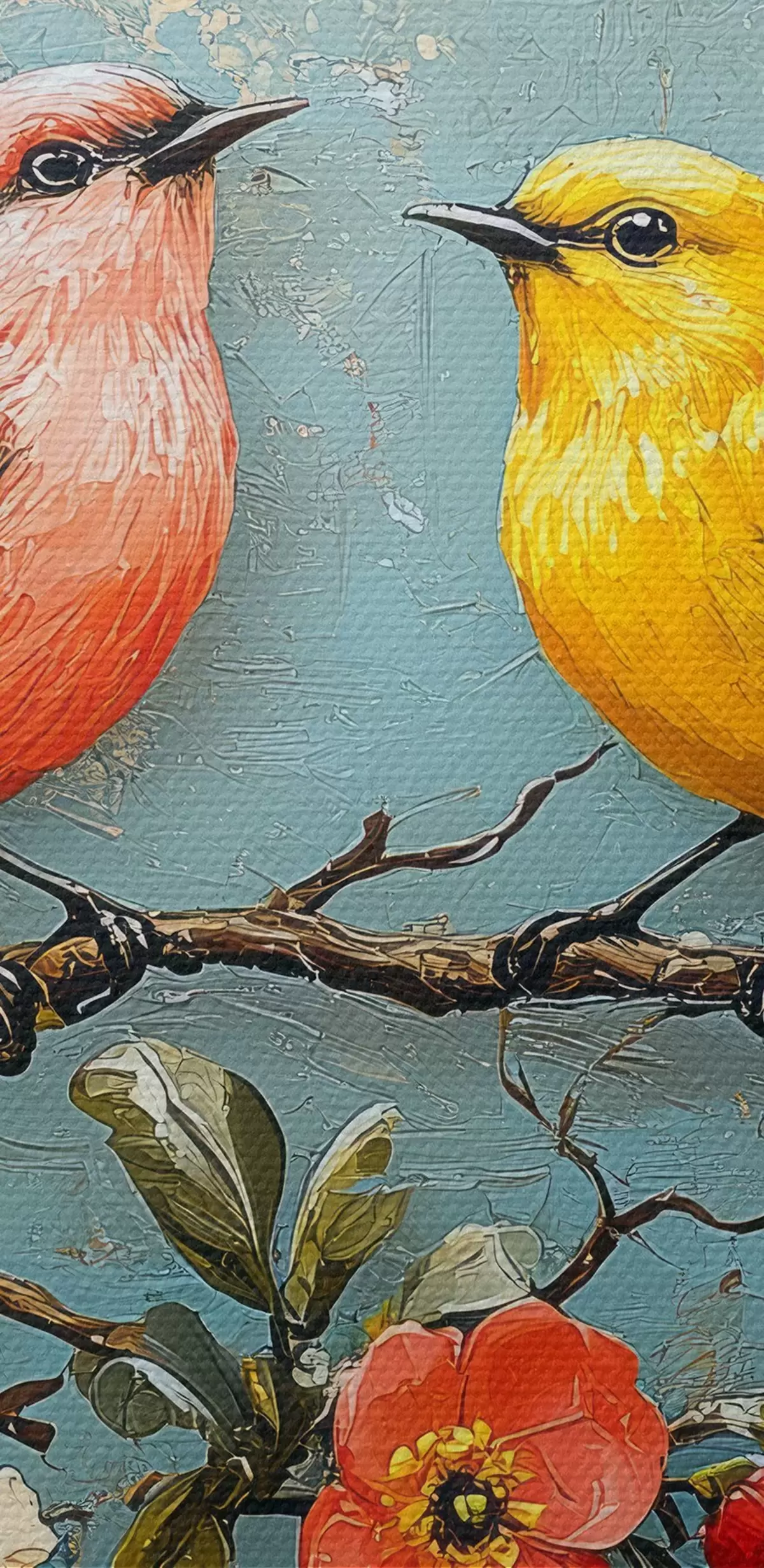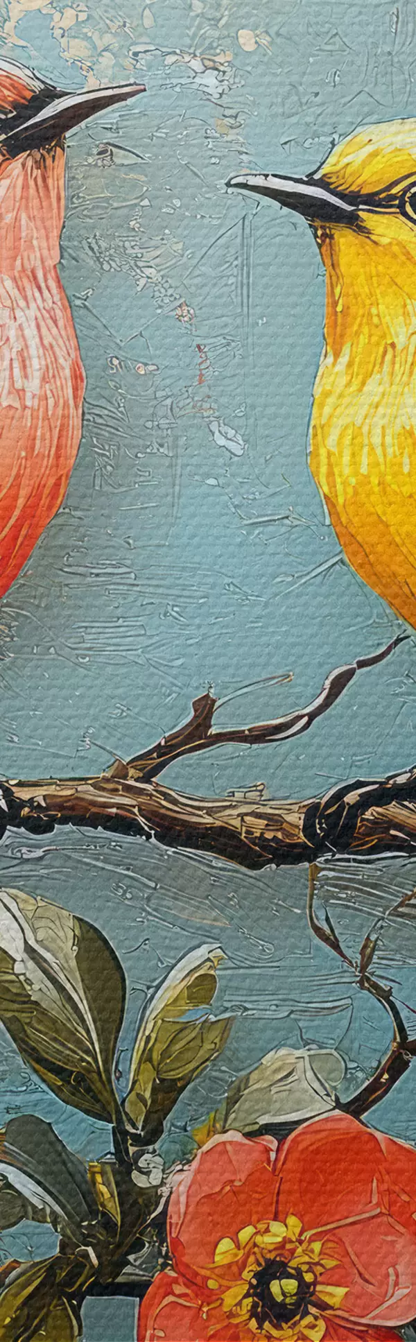 Fototapete Vögel auf einem Sakura-Zweig im Stil der Ölmalerei s41834