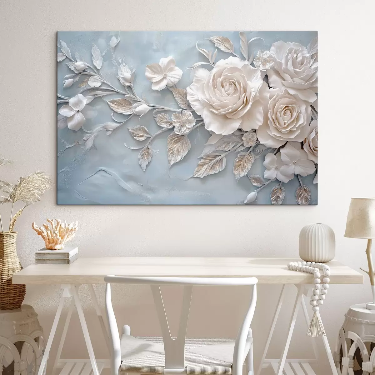 Drei Materialtypen stehen zur Verfügung: Economic Canvas - ein dichtes und haltbares Material für den Digitaldruck, identisch mit Malerleinwand, wasserfeste Oberfläche, realistische Wiedergabe von Details, mittelkörniges Material. Premium Canvas - die Textur ähnelt der einer Malerleinwand (verwobene kleine Fäden). Weiche, detaillierte Wiedergabe des Bildes auf einer matten Oberfläche. Eco-Premium - hochwertiges Gewebe aus 100% Baumwolle. Dank der natürlichen Baumwollfasern ist das Material langlebig und verschleißfest. Hervorragende Farbwiedergabe und Detailtreue.