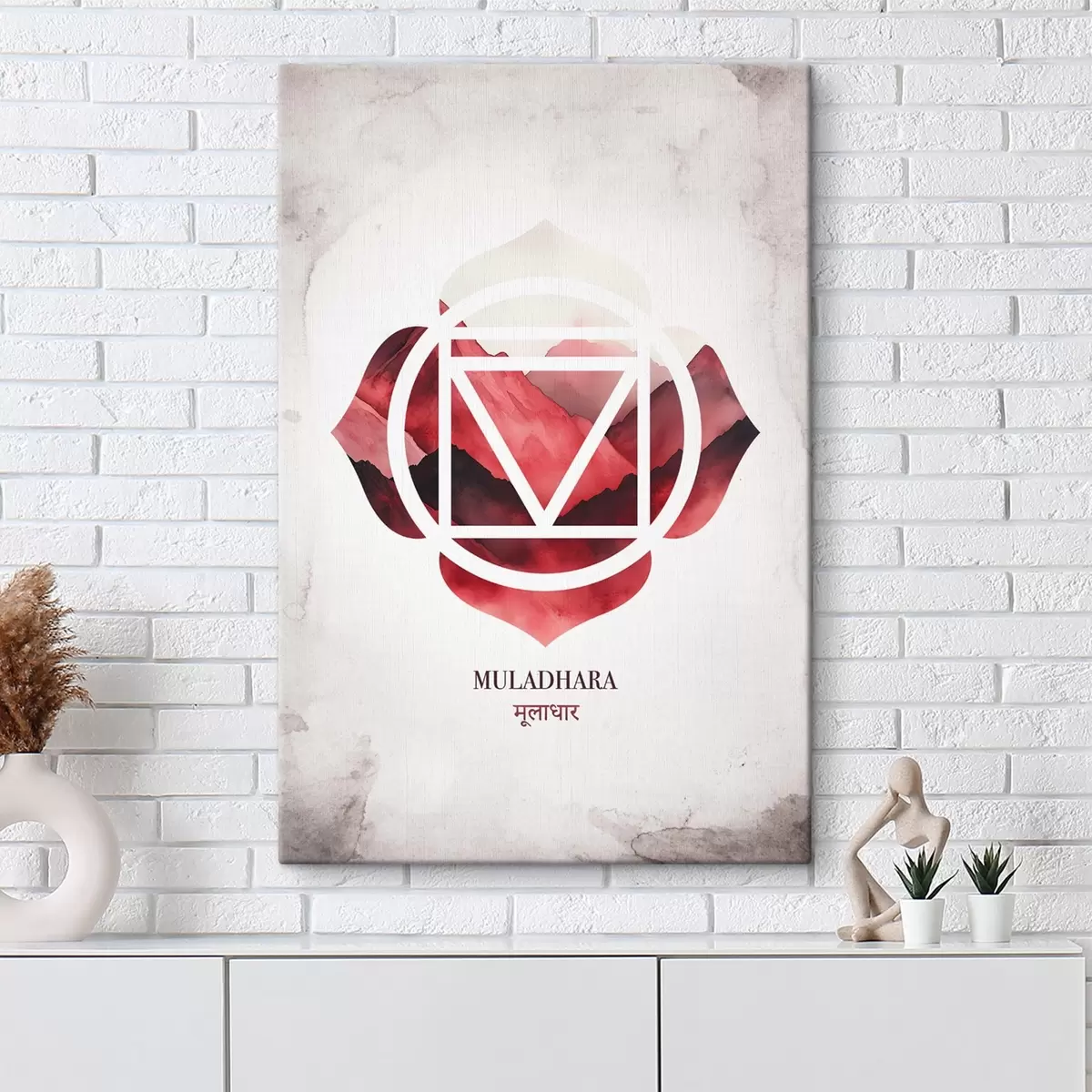 Gemälde Muladhara-Chakra, rotes Chakra, Esoterik, Meditation, Buddhismus, Berge im Aquarellstil Art. s41880