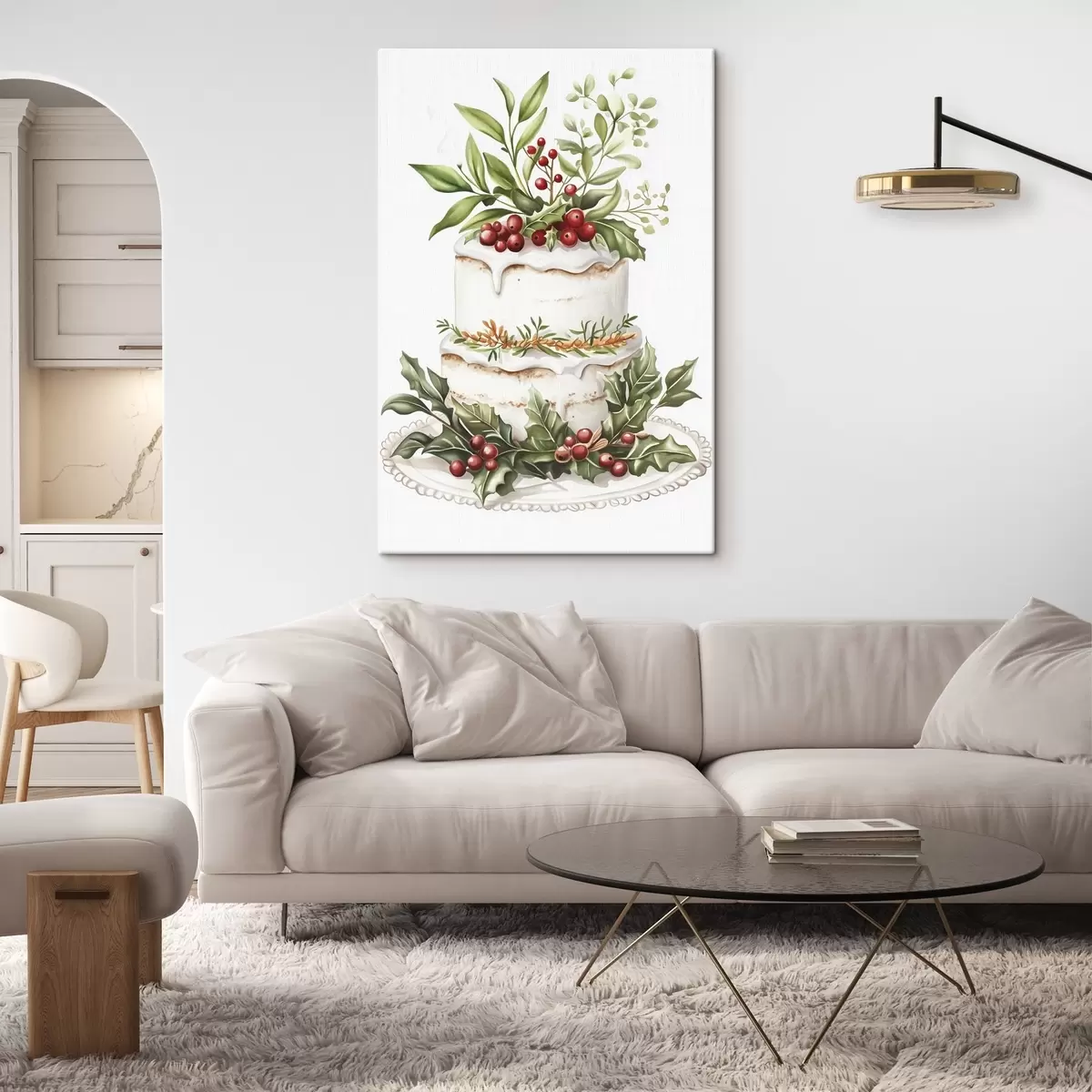 Gemälde Festlicher Kuchen mit Preiselbeeren, Aquarellstil, köstlich Art. s41945
