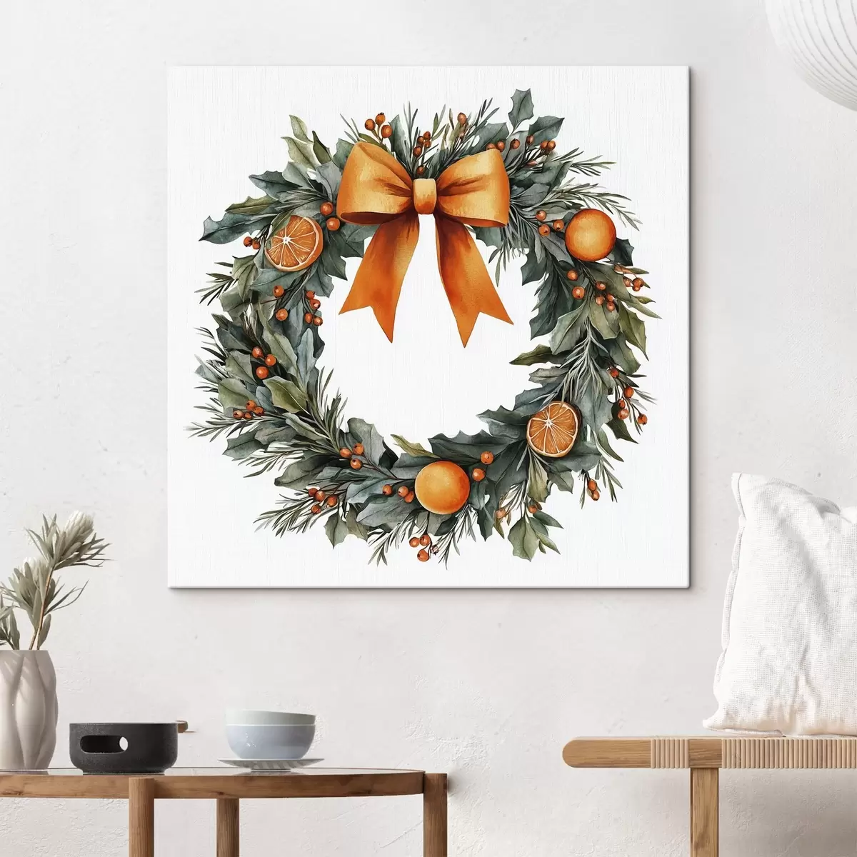 Gemälde Schöner festlicher Kranz mit Tanne, Orangen, Beeren und Schleife Art. s41955