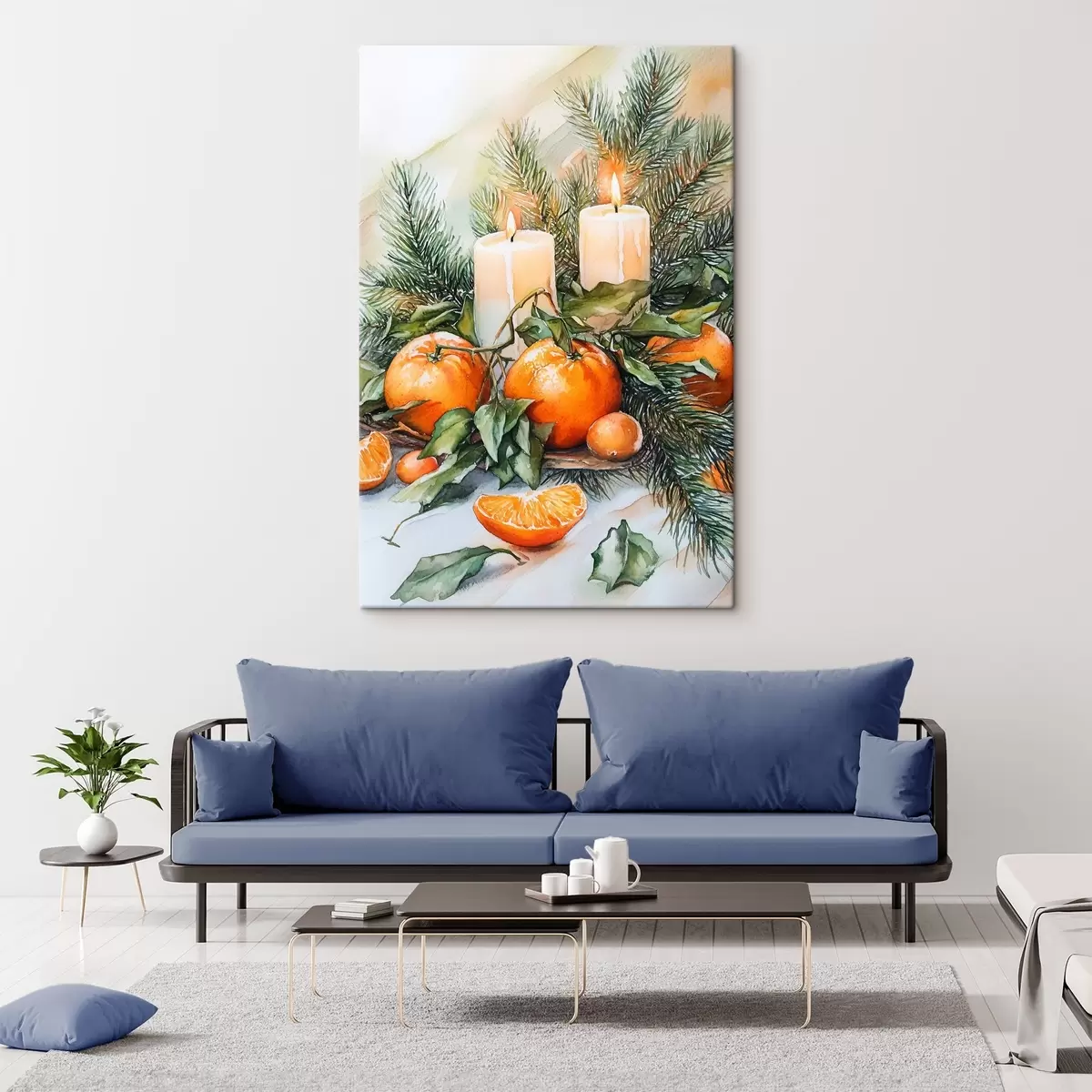 Gemälde Schöne Weihnachtsdekoration mit Kerzen, Orangen und Tannenzweigen Art. s41958