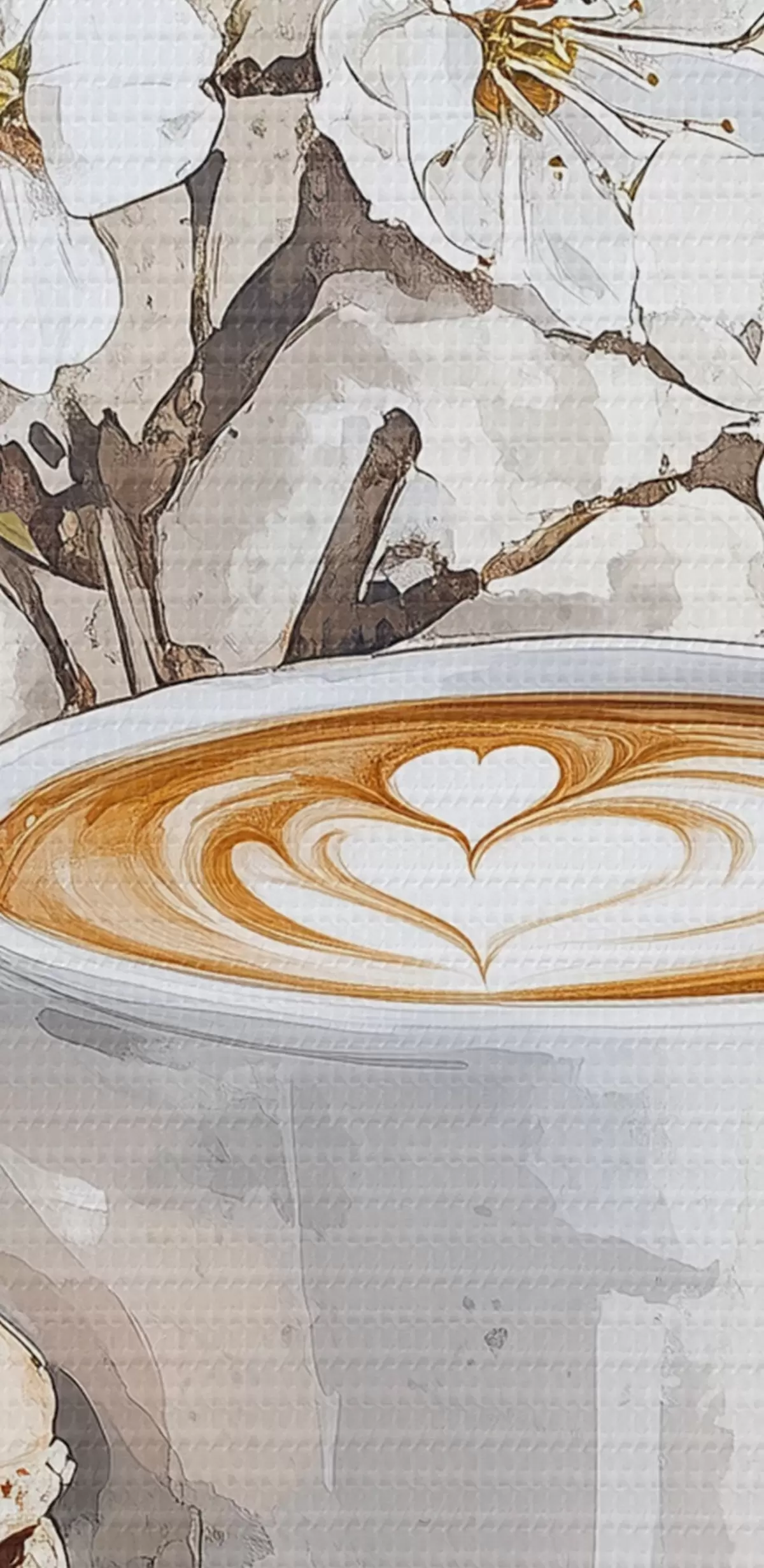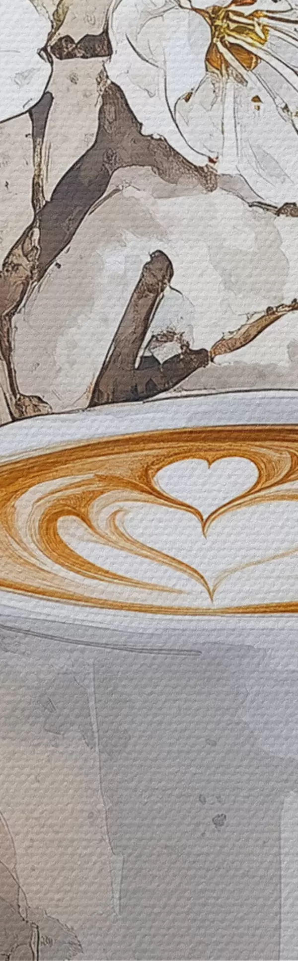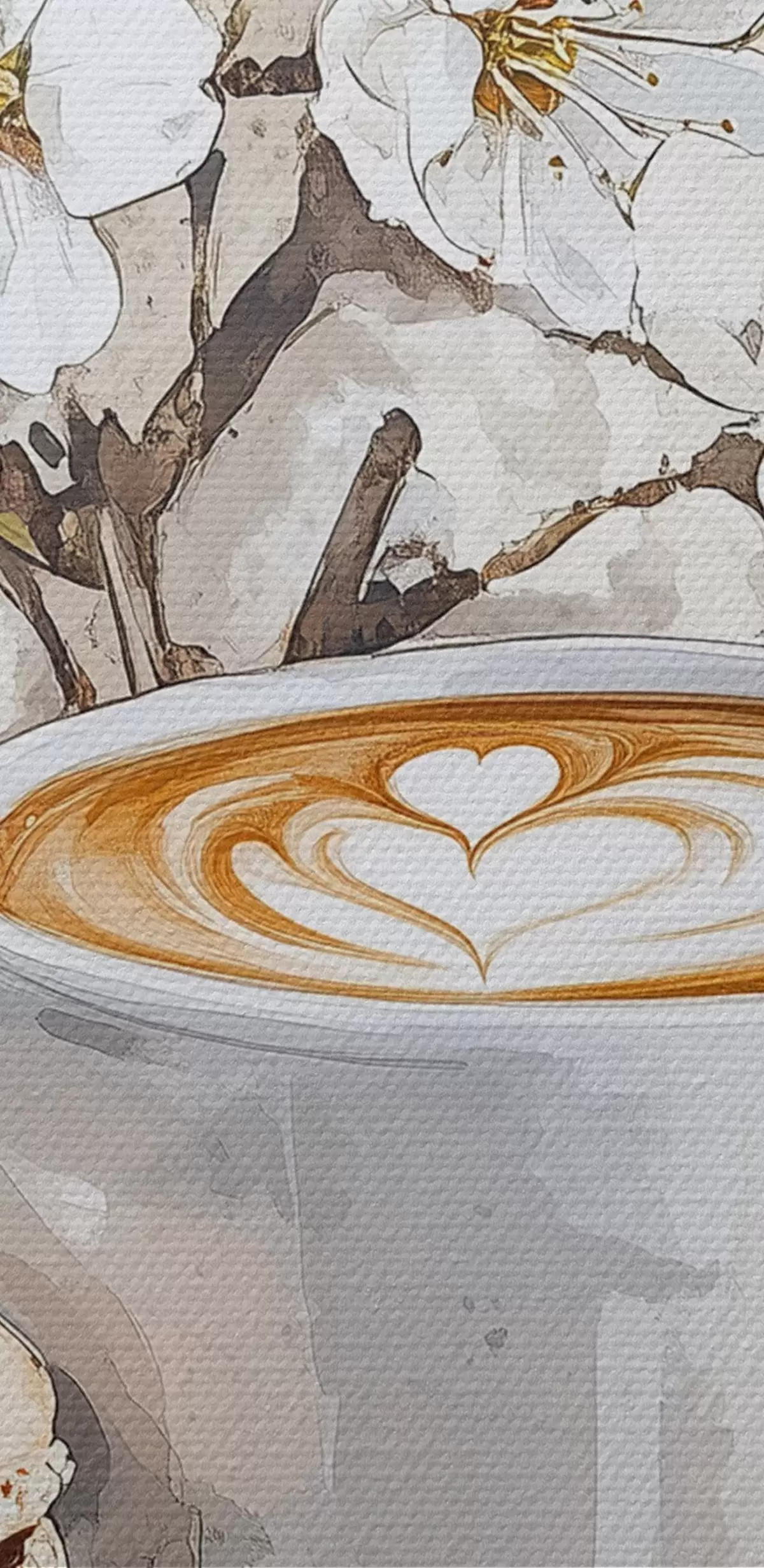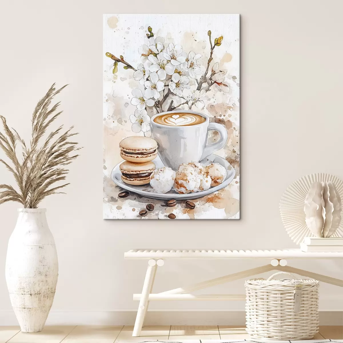 Gemälde Schöne Tasse Kaffee, Jasminblüten, Makronen, weiche Aquarellfarben Art. s41964