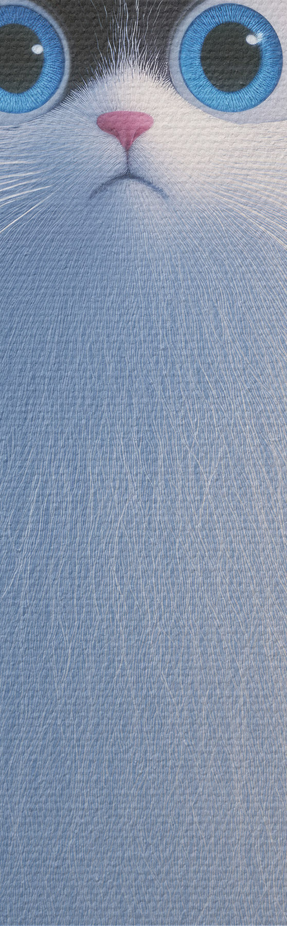 Gemälde Eine überraschte flauschige Katze mit einem Mädchen im Illustrationsstil Art. s41974