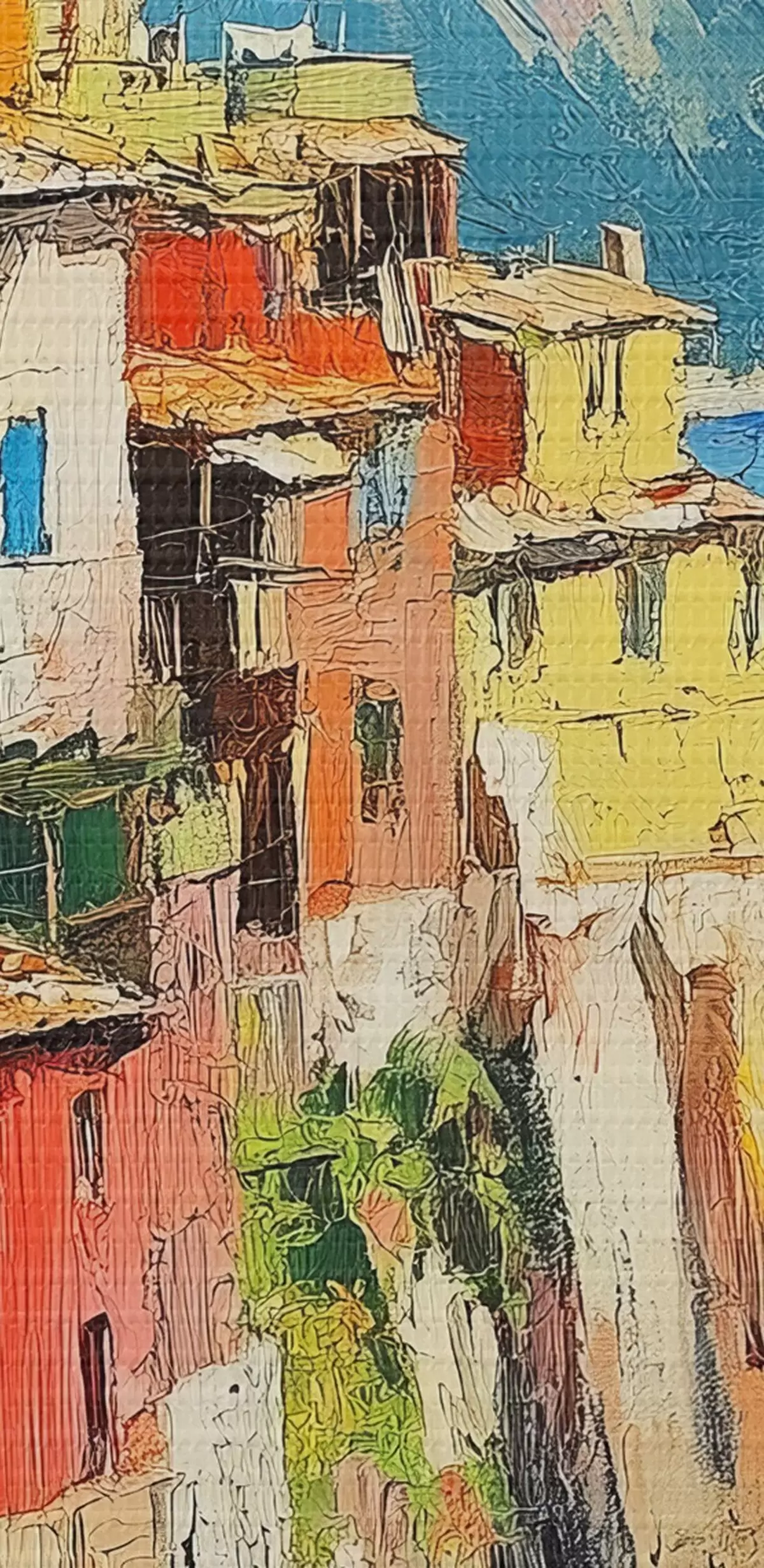 Fototapete Italienische Stadt am Meer im Stil der Ölmalerei s42002