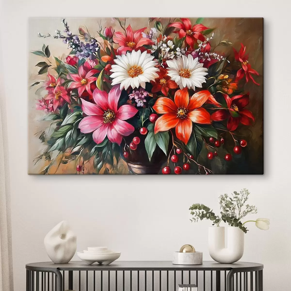 Drei Materialtypen stehen zur Verfügung: Economic Canvas - ein dichtes und haltbares Material für den Digitaldruck, identisch mit Malerleinwand, wasserfeste Oberfläche, realistische Wiedergabe von Details, mittelkörniges Material. Premium Canvas - die Textur ähnelt der einer Malerleinwand (verwobene kleine Fäden). Weiche, detaillierte Wiedergabe des Bildes auf einer matten Oberfläche. Eco-Premium - hochwertiges Gewebe aus 100% Baumwolle. Dank der natürlichen Baumwollfasern ist das Material langlebig und verschleißfest. Hervorragende Farbwiedergabe und Detailtreue.