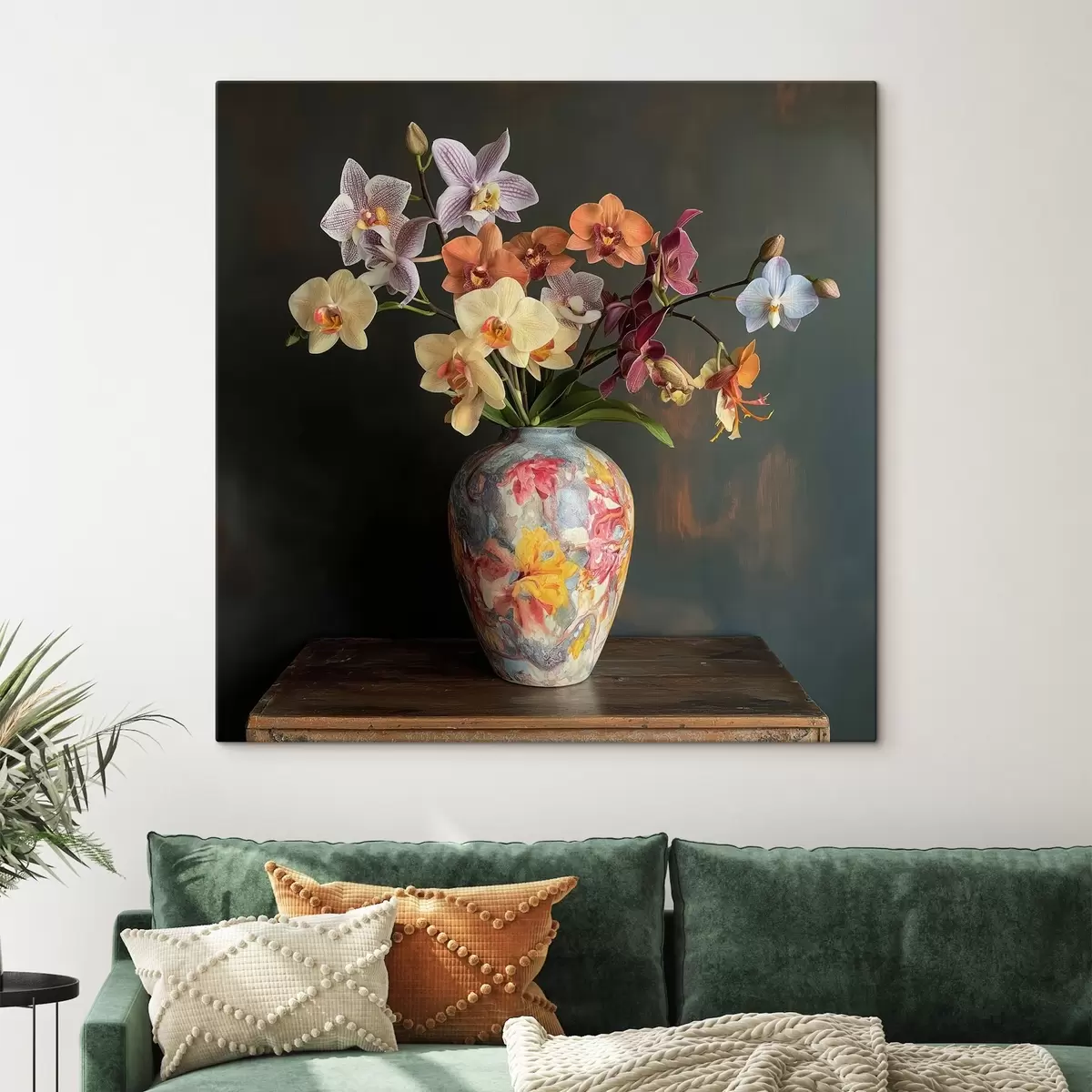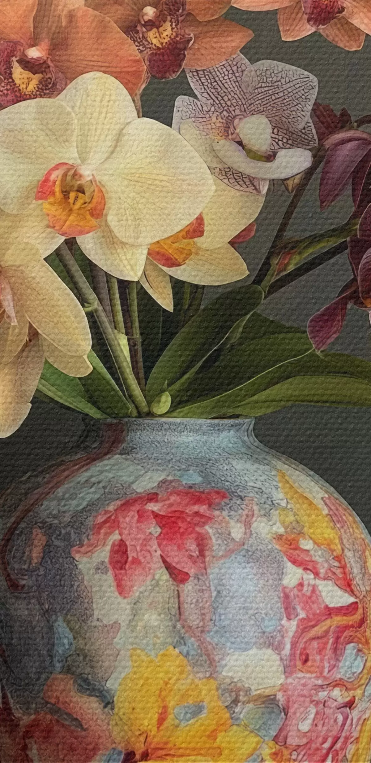 Fototapete Eine Vase mit Orchideen in der Art der Malerei s42046
