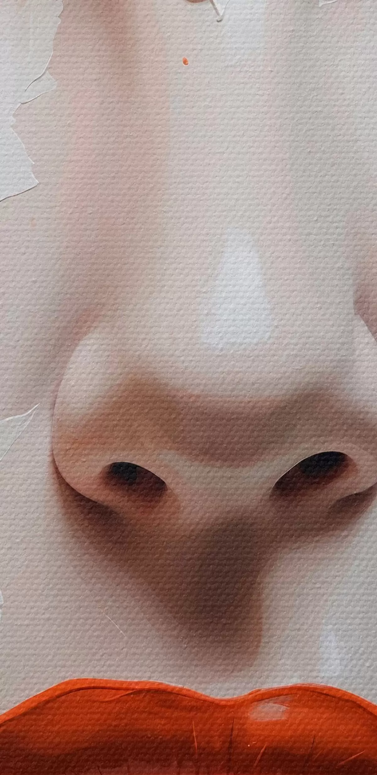 Gemälde Gesicht eines Mädchens in weißer und oranger Farbe Art. s42092