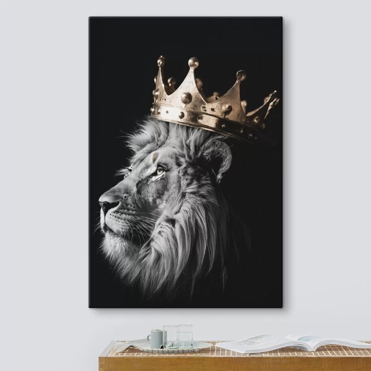 Gemälde Löwe mit Krone auf dunklem Hintergrund Art. s42096