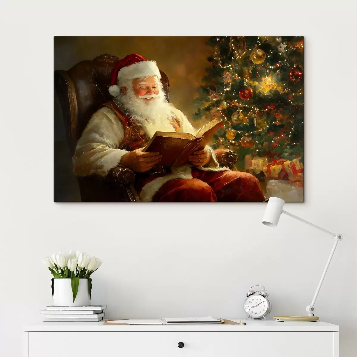 Gemälde Der Weihnachtsmann liest ein Buch in der Nähe des Weihnachtsbaums Art. s42100