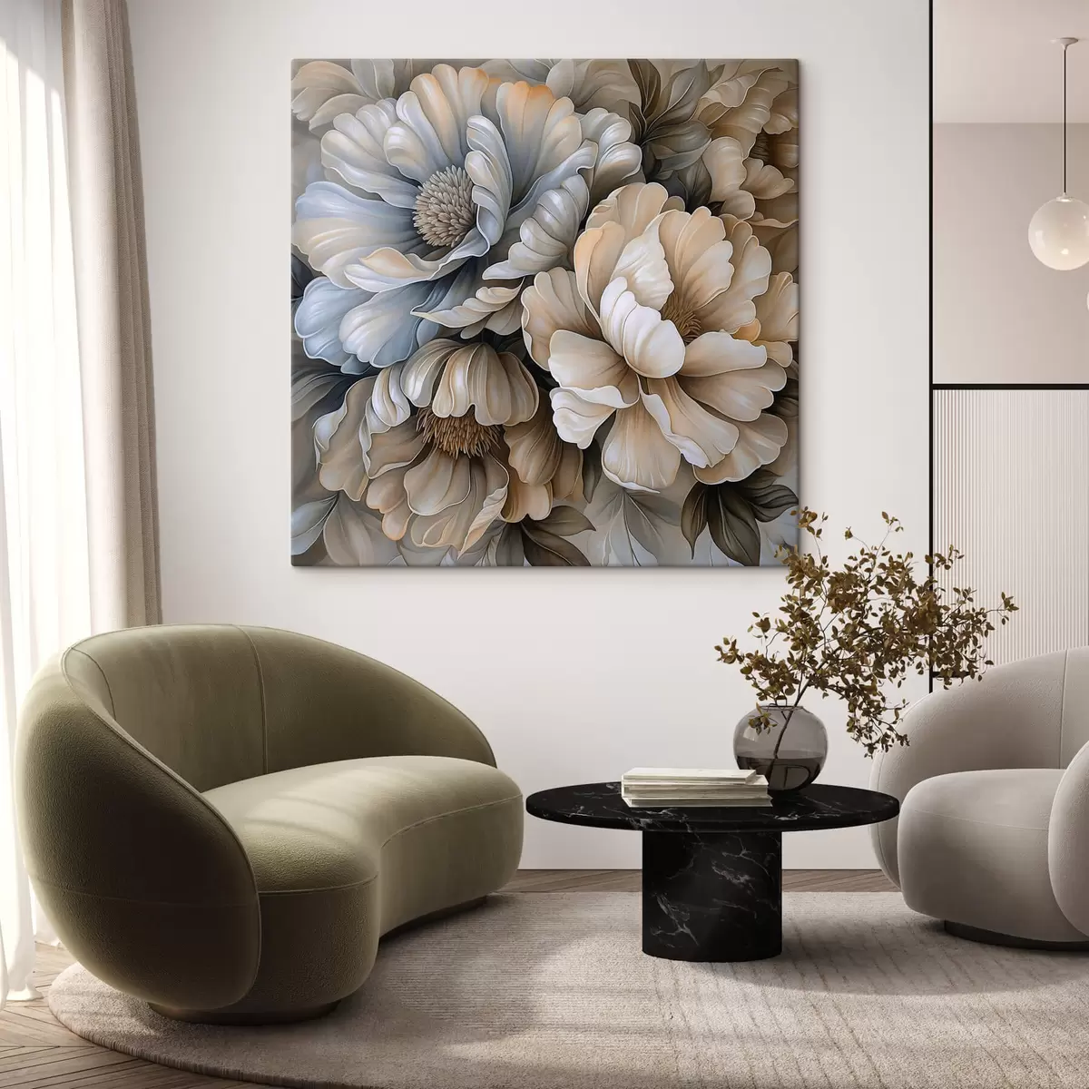 Drei Materialtypen stehen zur Verfügung: Economic Canvas - ein dichtes und haltbares Material für den Digitaldruck, identisch mit Malerleinwand, wasserfeste Oberfläche, realistische Wiedergabe von Details, mittelkörniges Material. Premium Canvas - die Textur ähnelt der einer Malerleinwand (verwobene kleine Fäden). Weiche, detaillierte Wiedergabe des Bildes auf einer matten Oberfläche. Eco-Premium - hochwertiges Gewebe aus 100% Baumwolle. Dank der natürlichen Baumwollfasern ist das Material langlebig und verschleißfest. Hervorragende Farbwiedergabe und Detailtreue.