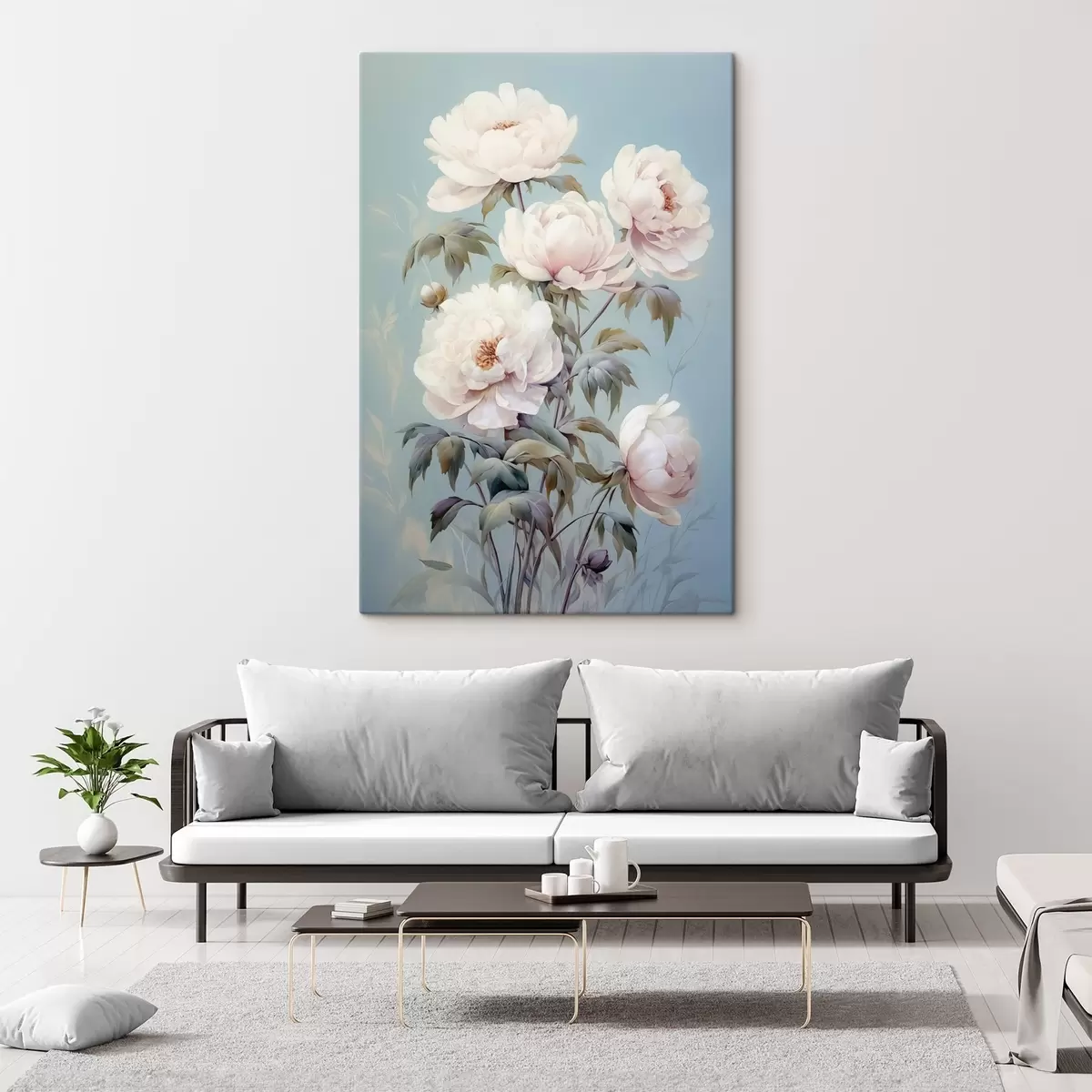 Gemälde Pfingstrosen auf pastellblauem Hintergrund im Vintage-Stil Art. s42123