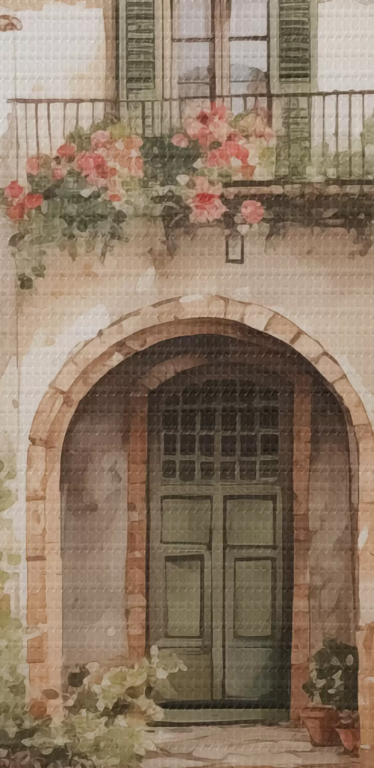 Fototapete Italienischer Innenhof mit Blumentöpfen Nachahmung eines Aquarells s42126