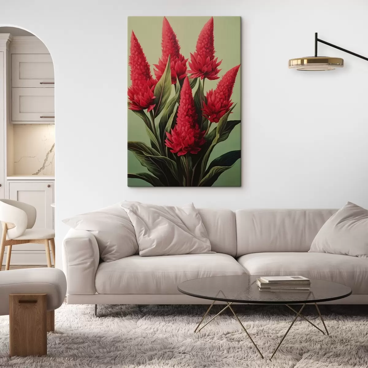 Gemälde Rote Blumen auf grünem Hintergrund Art. s42166