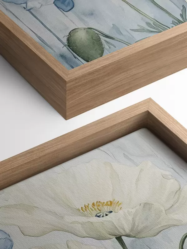 Gemälde Blaue und weiße Mohnblumen auf einem Aquarellhintergrund Art. s42191