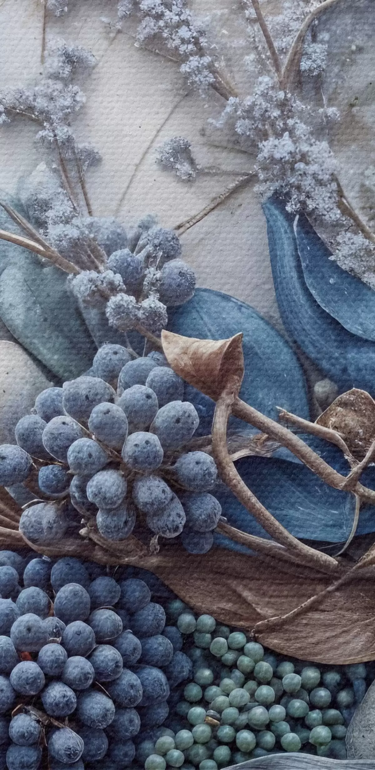 Gemälde Detaillierte, strukturierte, abstrakte, üppige Blumen mit großen, leuchtend blauen und rosa Blumen, Beeren und anderen botanischen Elementen Art. s42210
