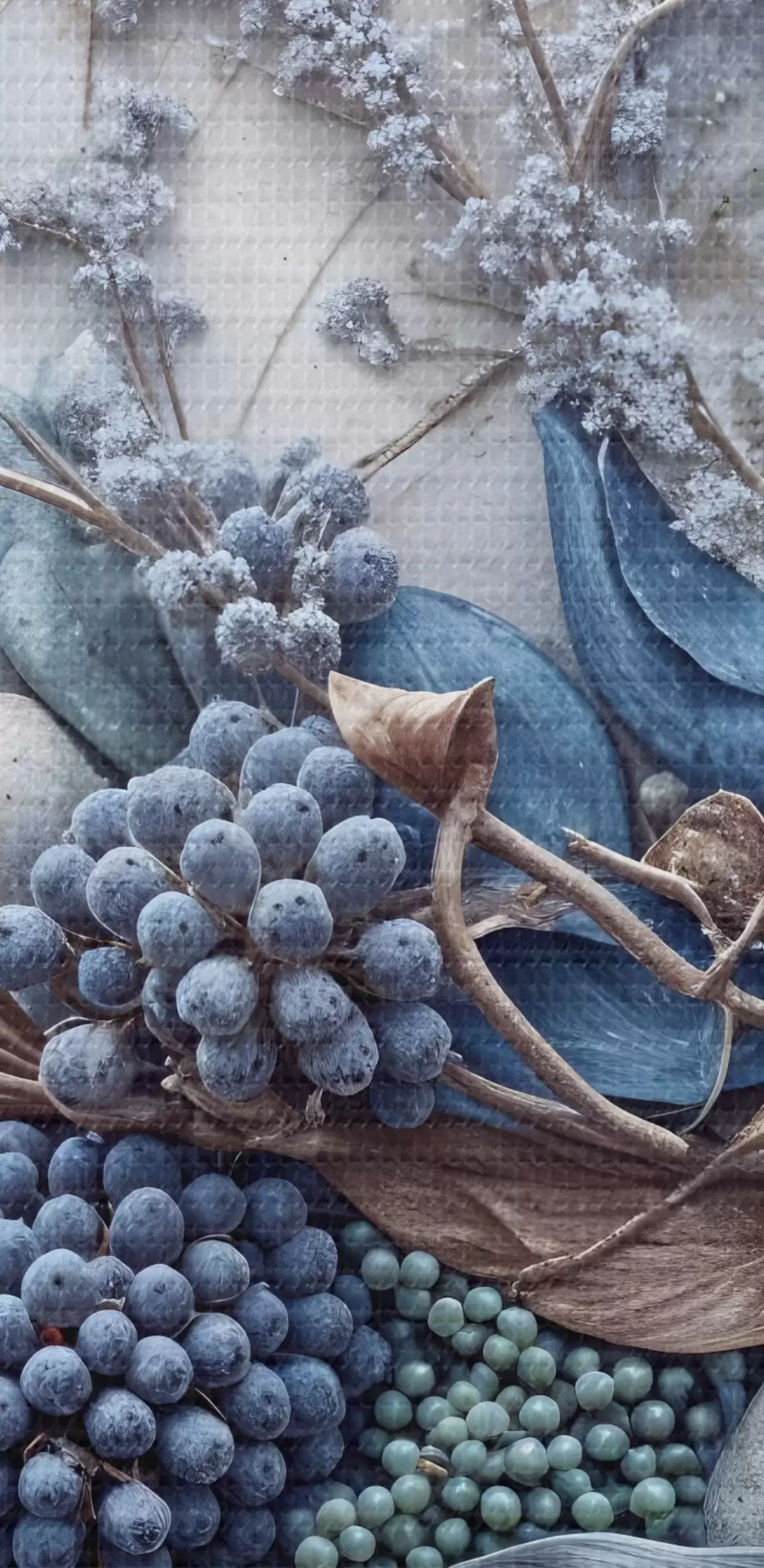 Fototapete Detaillierte, strukturierte, abstrakte, üppige Blumen mit großen, leuchtend blauen und rosa Blumen, Beeren und anderen botanischen Elementen  s42210