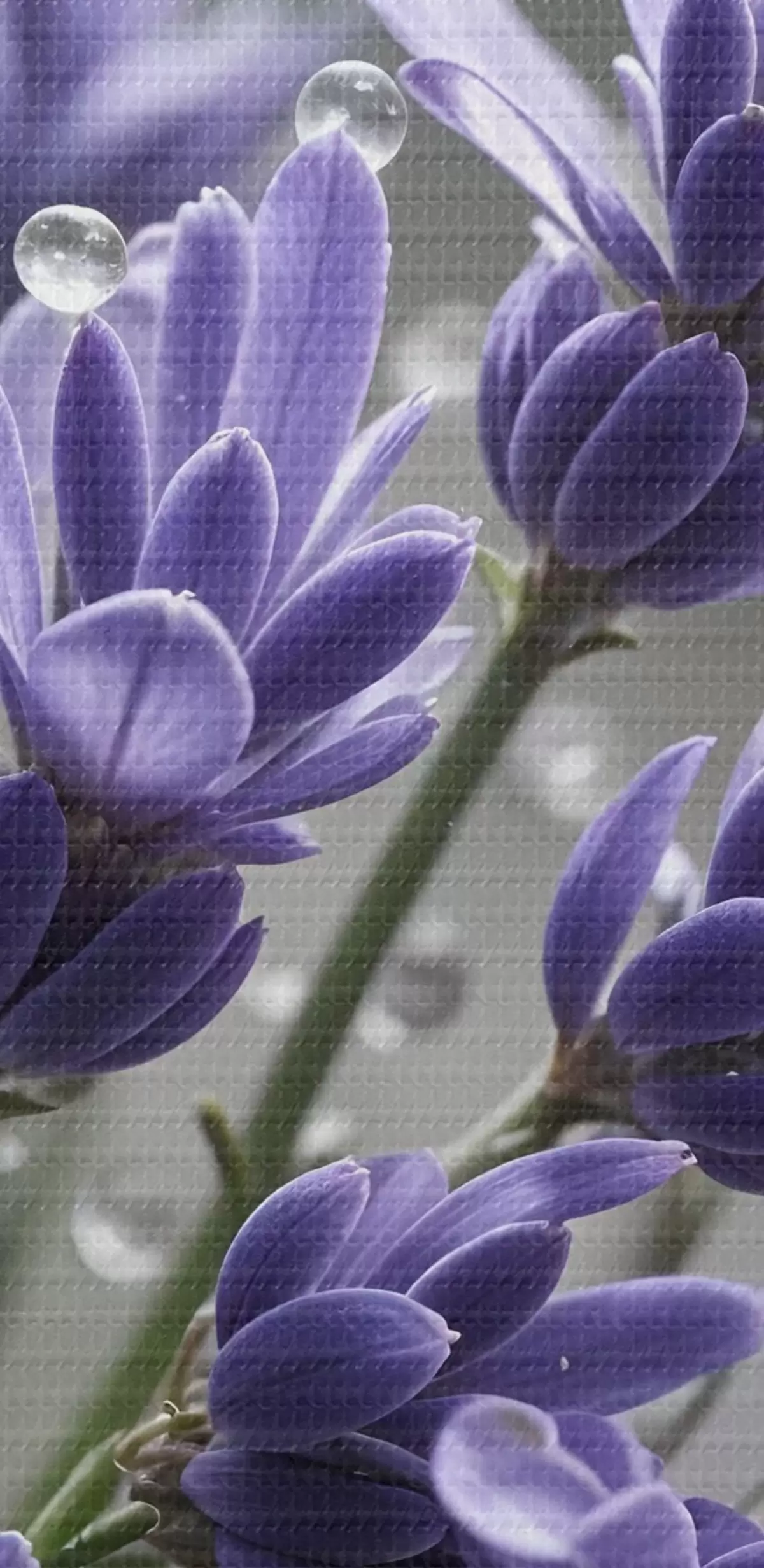 Gemälde Lila Lavendelblüten mit Wassertropfen auf den Blütenblättern, vor einem unscharfen Hintergrund Art. s42229
